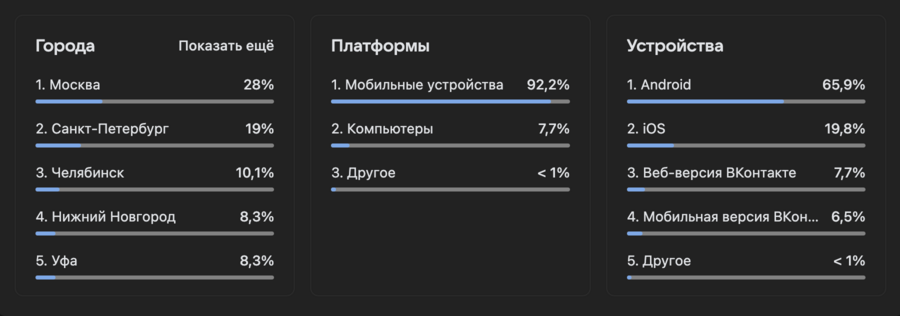 Именно эти платформы были выбраны для продвижения, так как по статистике в них лучше всего «залетает» новый контент. На остальных платформах, как правило, просмотры начинают набираться только после 5-10 публикаций. Также на всех платформах есть виральный охват, что позволяет видео и статьям набирать просмотры вне зависимости от количества подписчиков на канале / в группе.