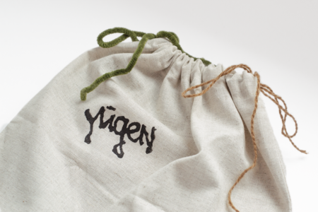 Каждый ковер упакован в хлопковый мешочек с логотипом Yūgen, завязанный шнурами из той же пряжи, что использовалась в его создании.