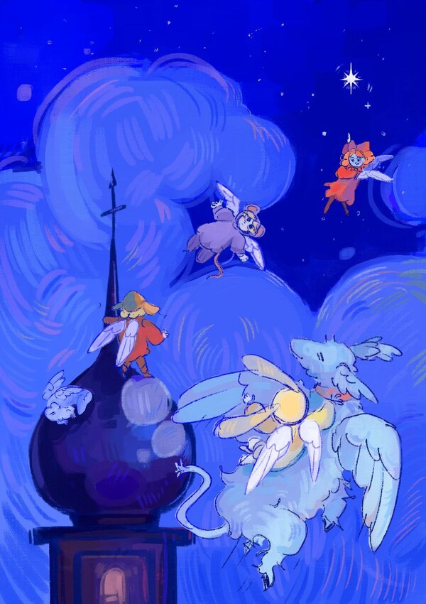 Люди, попавшие на небеса, обустроили свой мир так, чтобы он был похож на реальный. Даже после смерти быт и заботы остаются прежними, включая праздники. Ангелочки тоже отмечают Рождество! Виммельбух передаёт дух этого праздника и создаёт атмосферу снежной зимней ночи.