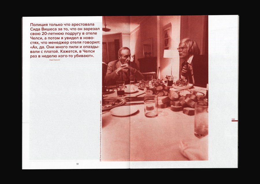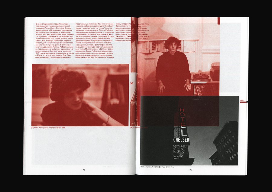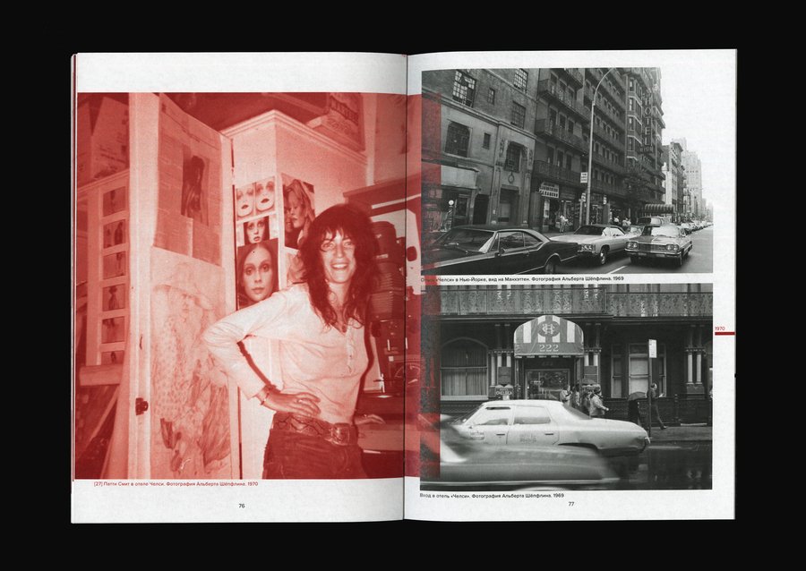 In addition to archival black and white images, red images are introduced into the first part of the catalogue: they are the identifier of the fact that the person in the photograph did something in the hotel walls. To understand exactly what the red picture in the first book by number can be compared to the image in the second: it’s all red. The corresponding images are numbered