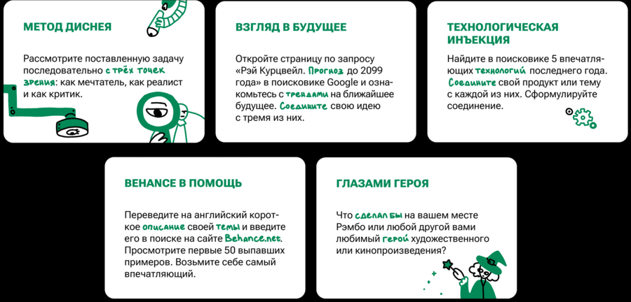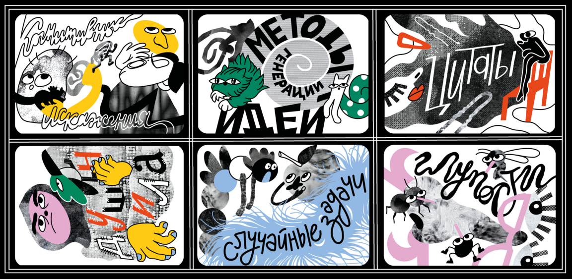 Методы генерации идей — это колода карт с нестандартными подходами к решению задач. С ее помощью можно посмотреть на вопрос под другим углом или выявить его неочевидные свойства.