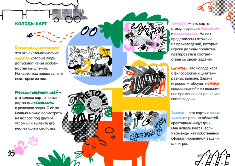Случайные задачи — это карты с заданиями из разных областей креативных индустрий. Она используется, если у команды нет собственной сформулированной задачи для игры.