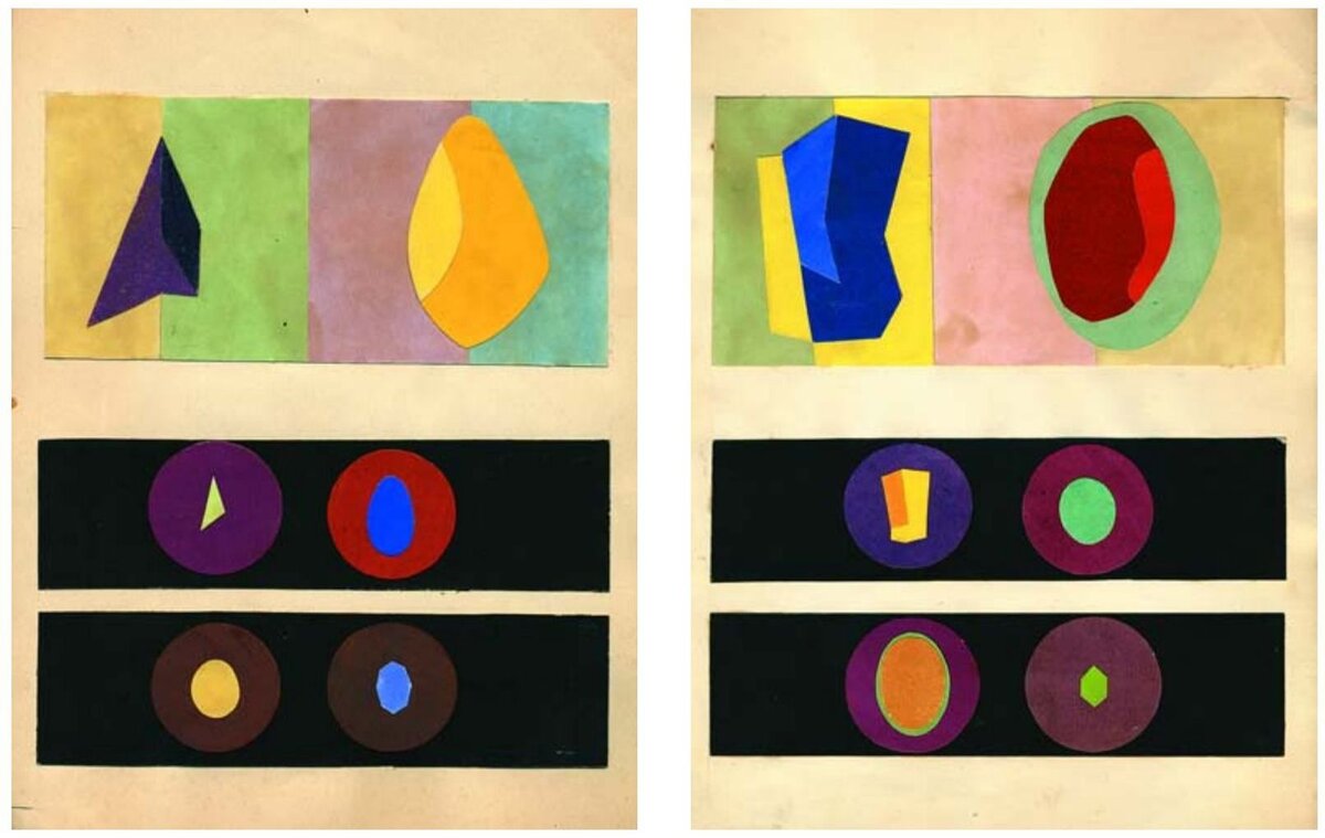 Результаты наблюдений за изменением цвета и формы при смотрении на две цветоформы одновременно. Страницы из «Справочника по цвету» М. В. Матюшина. Ленинград, 1932 год