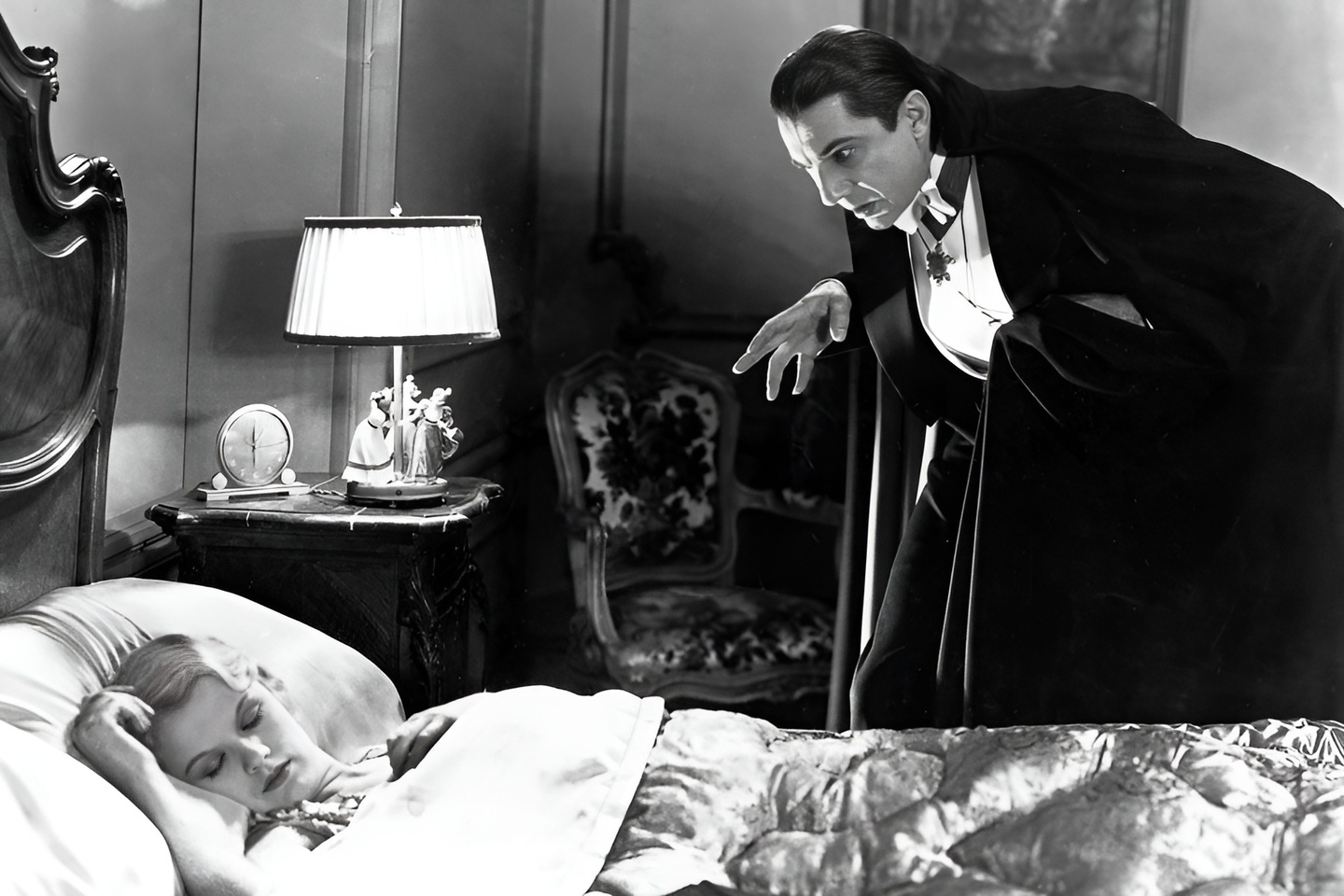 Воплощение Дракулы Белой Лугоши в одноименном фильме от Universal Studios положило начало классическому иконографическому образу вампира как аристократа с элегантным костюмом и театральной манерой. Лугоши появился на экране в черном фраке с белым жилетом, шелковом плаще с высоким воротником, и узнаваемой густой прической с начесом, которая закрепила визуальный код вампира на многие десятилетия.