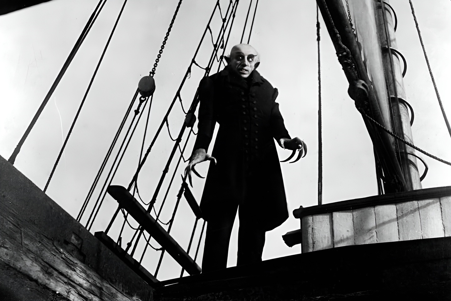 «Носферату» Фридриха Вильгельма Мурнау — классика немецкого экспрессионизма, где Макс Шрек создал образ вампира, далекий от гламурных и аристократических образов будущих вампиров. Шрек предстает здесь скорее болезненной, уродливой и зловещей сущностью, с лысой головой, заостренными ушами, длинными когтистыми пальцами и изможденным, почти мертвенно-бледным лицом. Граф Орлок — это олицетворение ужасающего чуждого начала, и визуально он напоминает болезнь, близкую к разложению.