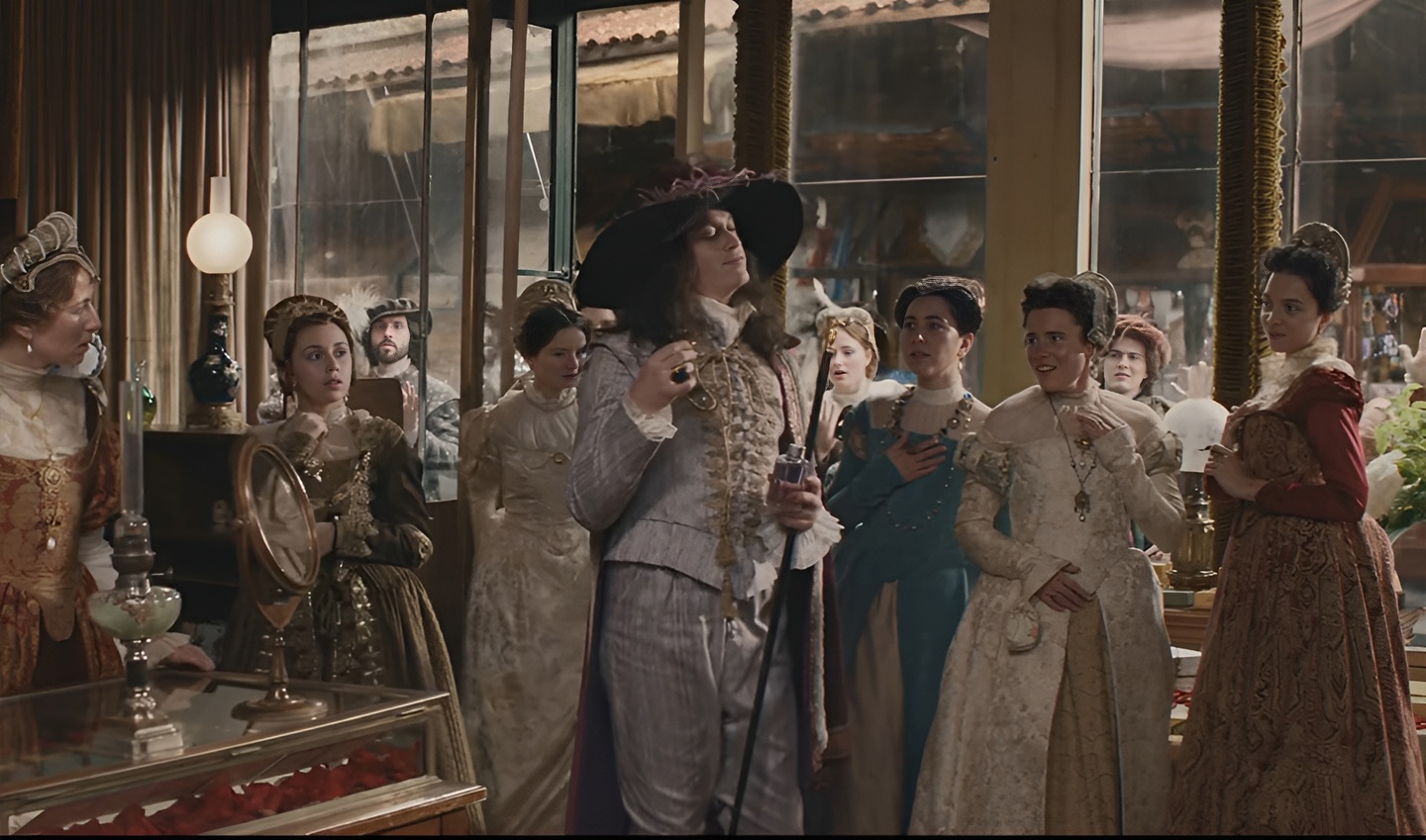 Костюм и грим Лангеллы создают образ утонченного денди — менее монструозный, но не теряющий свою зловещую природу. Акцент делается на роскоши и красоте: тонкие ткани, темные цвета, подчеркнутая грациозность движений. Внешний вид становится более «человечным», что привносит в образ нотки внутренней трагедии и соблазнительной тайны.