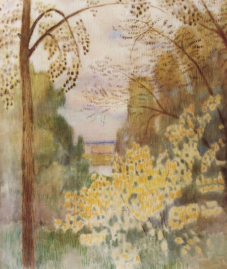 Майское настроение было безоблачным. Наконец-то! Пусть «Времена года» по вине «барыни»-заказчицы не воплотились во фреске, но зато первое признание: часть этих эскизов была куплена с выставки Третьяковской галереей. А на вторую победу, покрупнее, отозвались даже на родине — в той саратовской газете, которая два года назад называла его «претенциозной бездарностью». Теперь там писали: «Небезызвестный саратовской публике местный уроженец художник В. Э. Борисов-Мусатов продал меценату г. Гиршману за 4000 руб. две из своих картин „Водоем“ и „Гобелен“ (удостоенные Поленовской премии). Обе картины появятся… в парижском Салоне. Кроме того, несколько вещей молодого художника были выставлены в Париже в этом году и некоторые были проданы…».