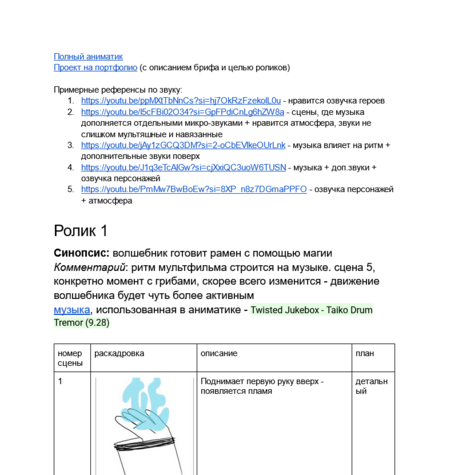 1. Подбор музыки — ключевая задача, так как на неё опирается ритм самой анимации 2. Озвучка «говорящих» персонажей 3. Оригинальная запись и подзвучка воды в роликах