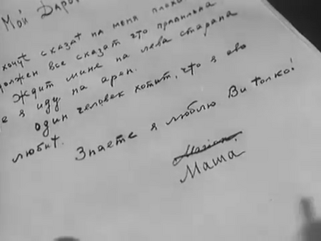 Вновь крупные планы помогают зрителю прочувствовать внутреннюю жизнь героини, ее надрыв и боль. Особенно отражает эмоциональный накал ее взгляд.