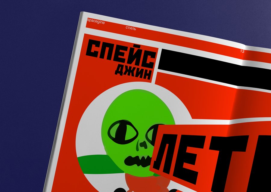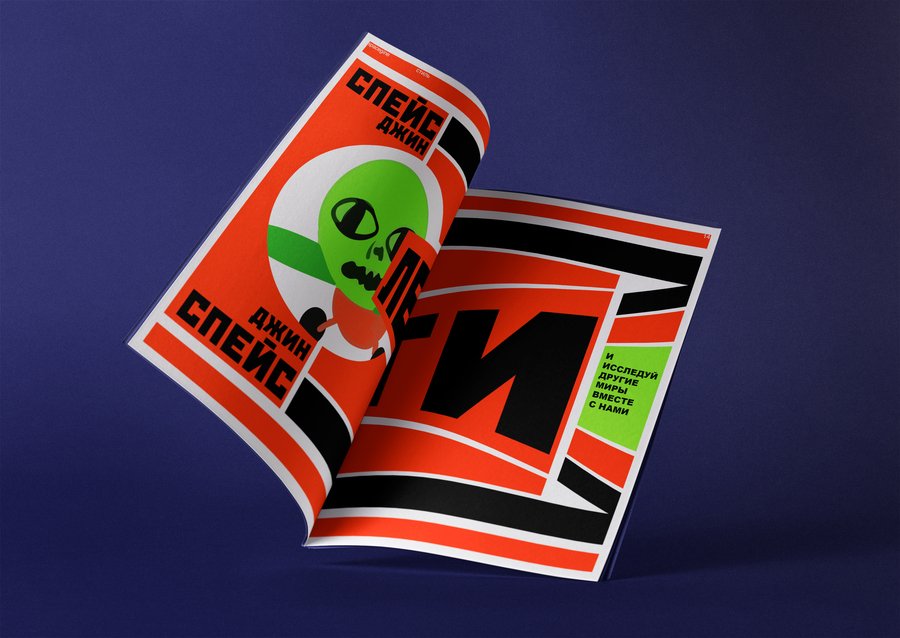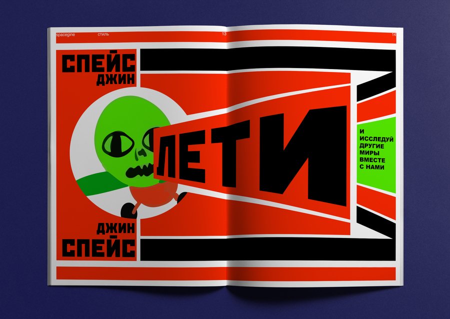 В журнале есть развороты, выполненные в стиле совесткого плаката, которые отсылают во времена, когда человек только начинал исследовать космос.