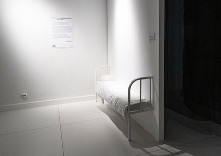 Этот объект отражает телесные переживания, сопровождающие бессонницу: ощущение внутреннего дискомфорта, уязвимости и нескончаемый поток мыслей, будто скрытый в толще стены.