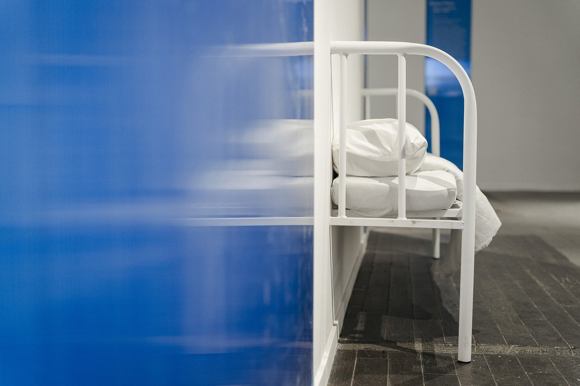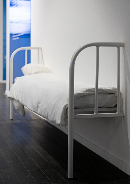 Проект обращен к переживанию экзистенциальной нестабильности, переданной через лаконичный, но многозначный образ. Возникает ощущение, будто кровать внезапно материализовалась из другой вселенной, промахнувшись с точкой приземления — как будто бы произошел сбой в системе координат.