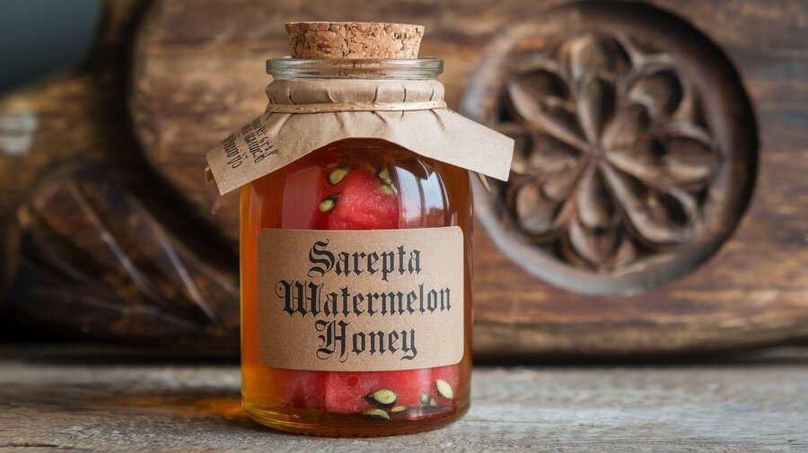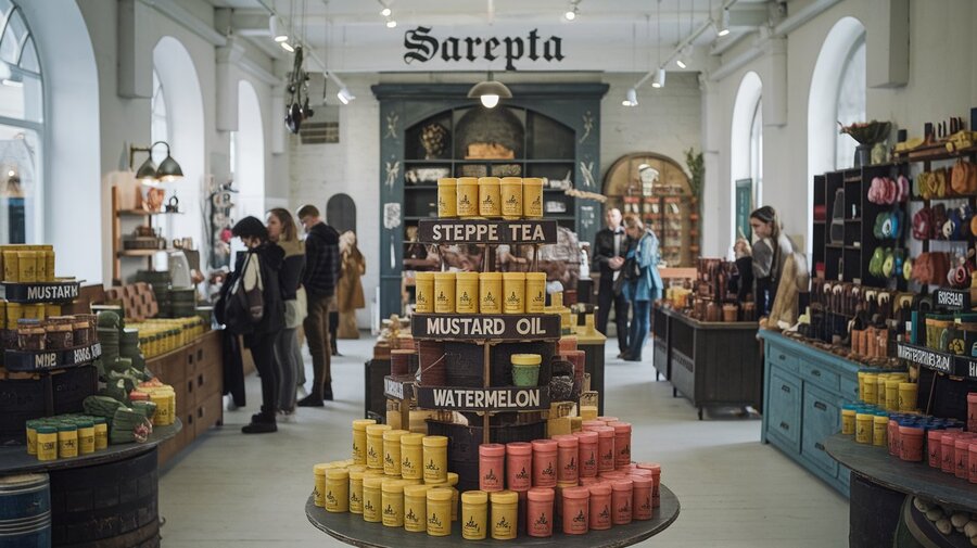 Сарептская продукция включает в себя следующие товары: горчичный чай, морковный чай, степной чай, арбузный кофе, арбузный мёд и горчичное масло.