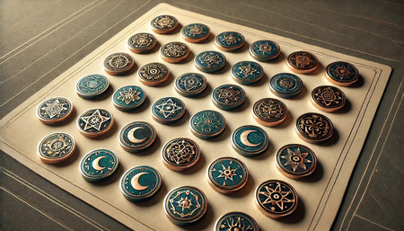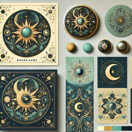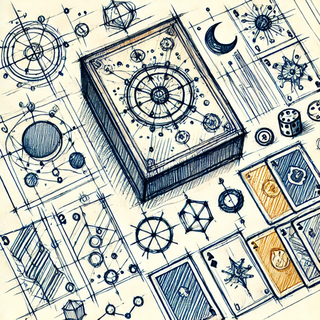 Скетчи дизайна элементов настольной игры, которые были сгенерированы при помощи Leonardo.ai