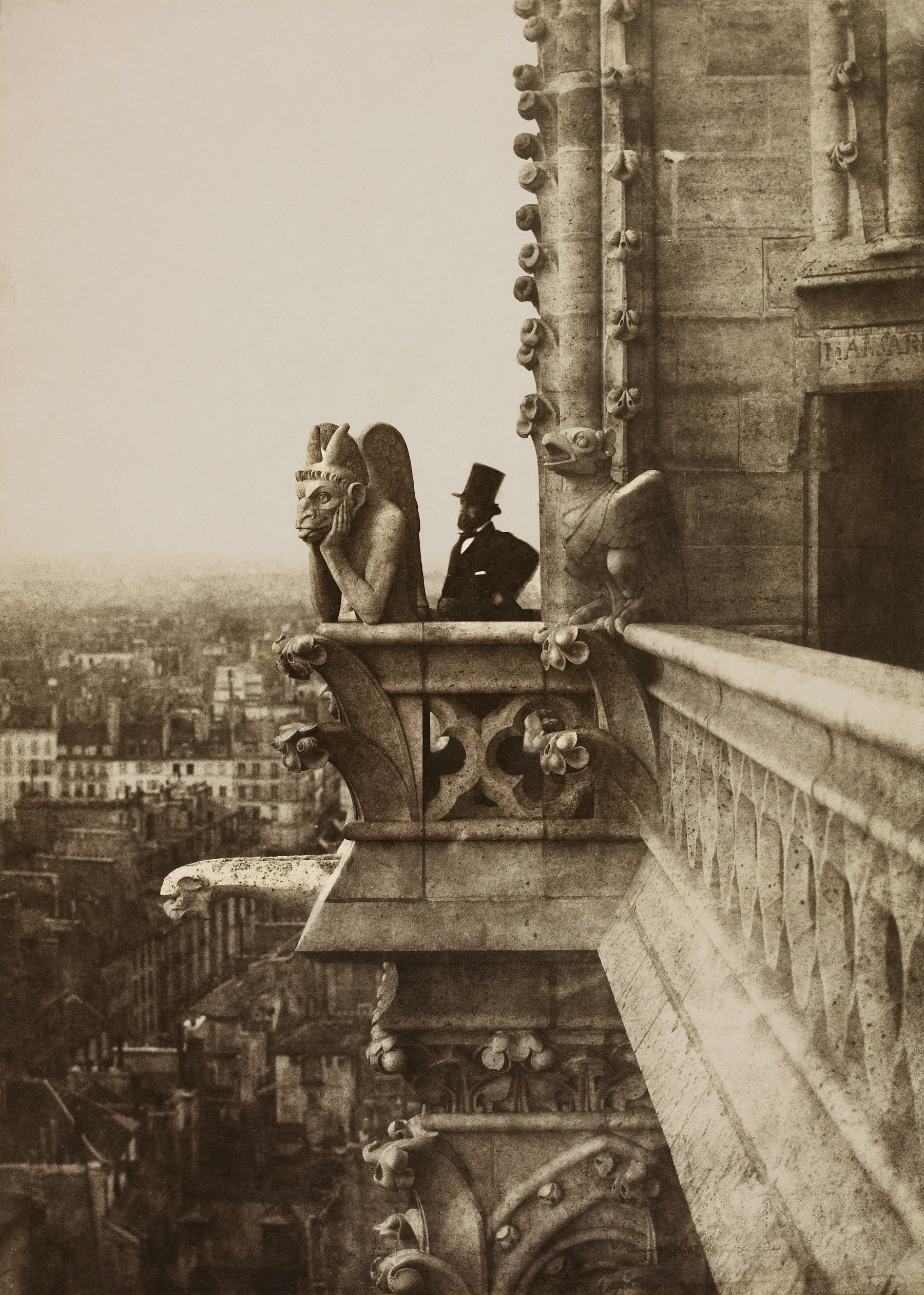 Позади скульптуры горгульи, Шарлю Негру позирует друг и компаньон, известный фотограф Анри Ле Сек. Негр намекает на общие интересы молодых людей. С одной стороны, это увлечение съемкой готической архитектуры, с другой — восторг от красоты и величия Парижа, который они показали обывателям, опередив многих мастеров своего времени.