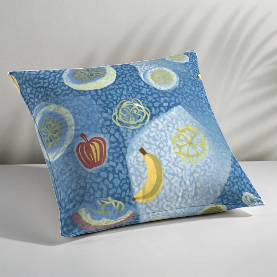 Prompt (орнамент, leonardo.ai, слева референс из оригинального проекта): the layout of the ornament for printing on textiles. crumpled sheets of paper, wrappers, apple cores, and banana skins should be distinguishable in the ornament. everything is done in a light blue shade, without bright accents. the pattern of the ornament is very very small