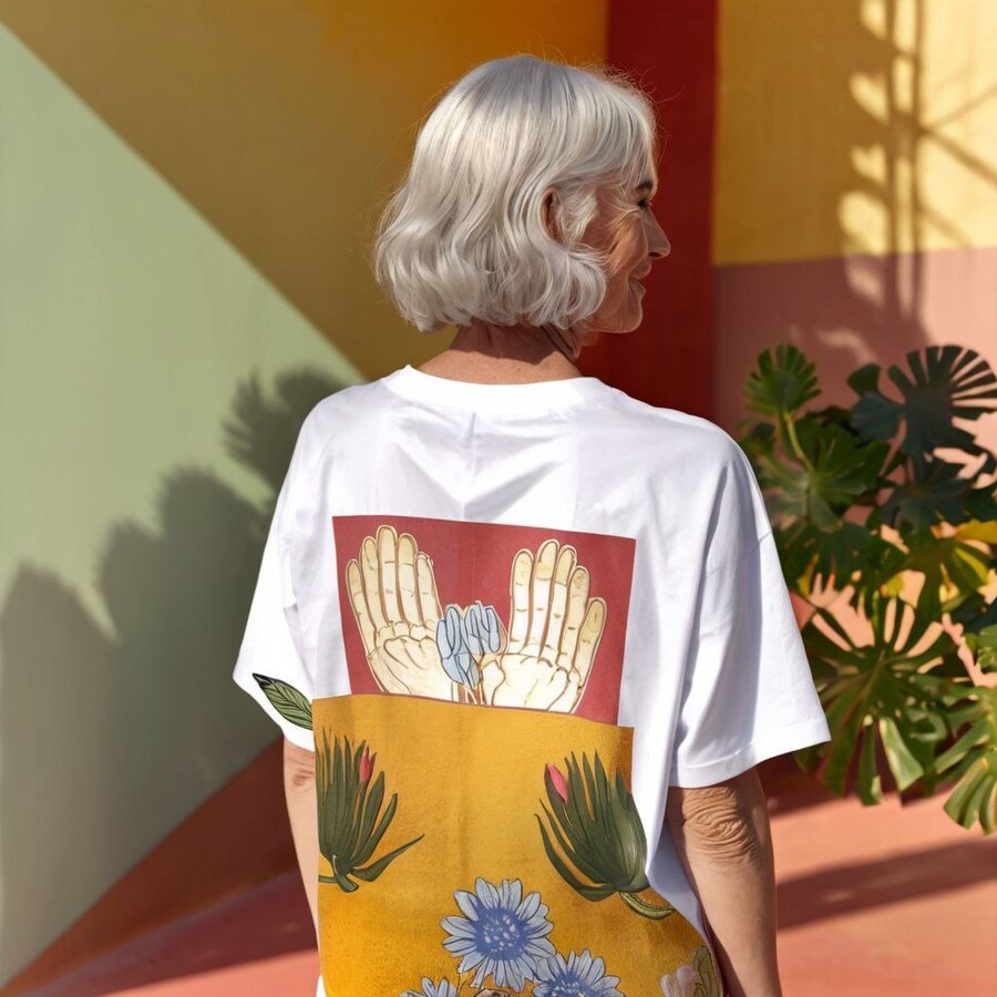 Prompt (leonardo.ai, 1,2,4 картинки): The back of a woman in white oversize t-shirt Prompt (leonardo.ai, 3 картинка): The back of a boy in white oversize t-shirt