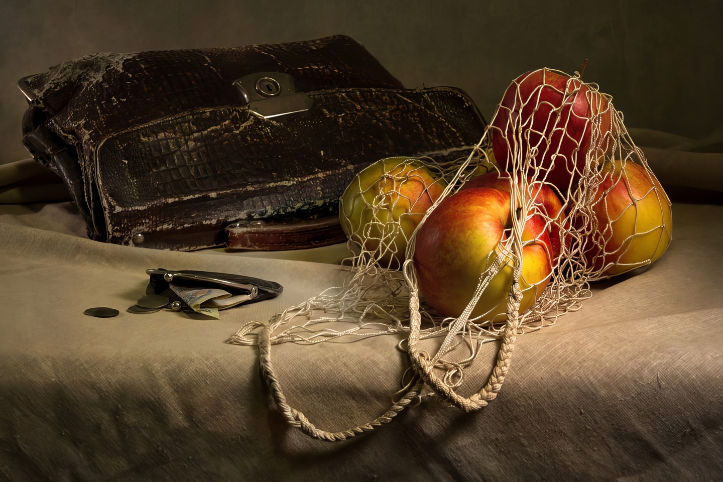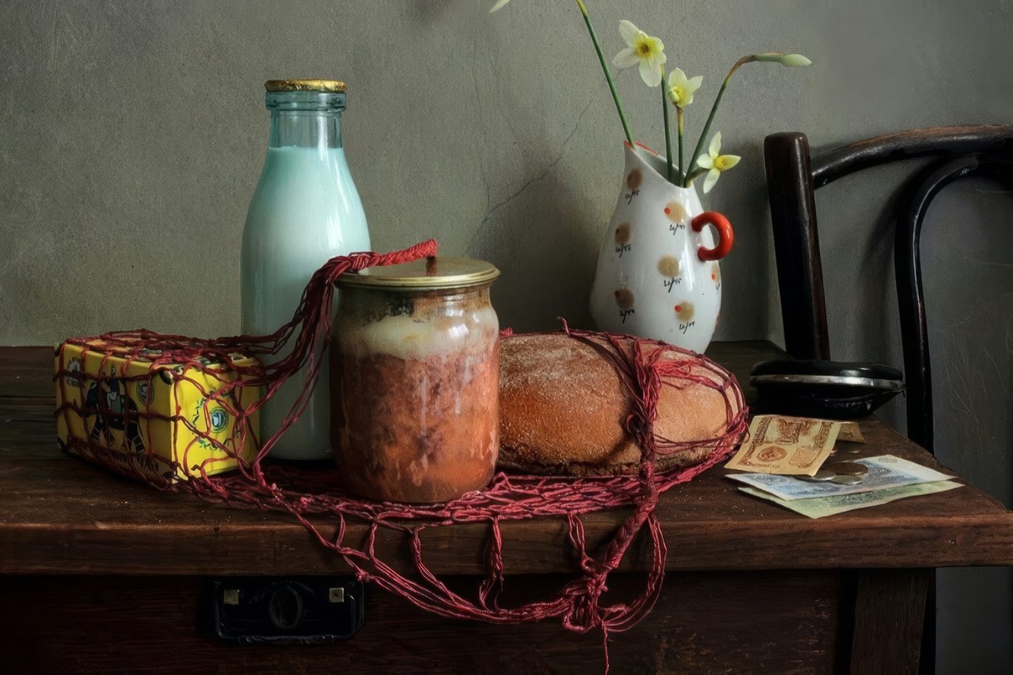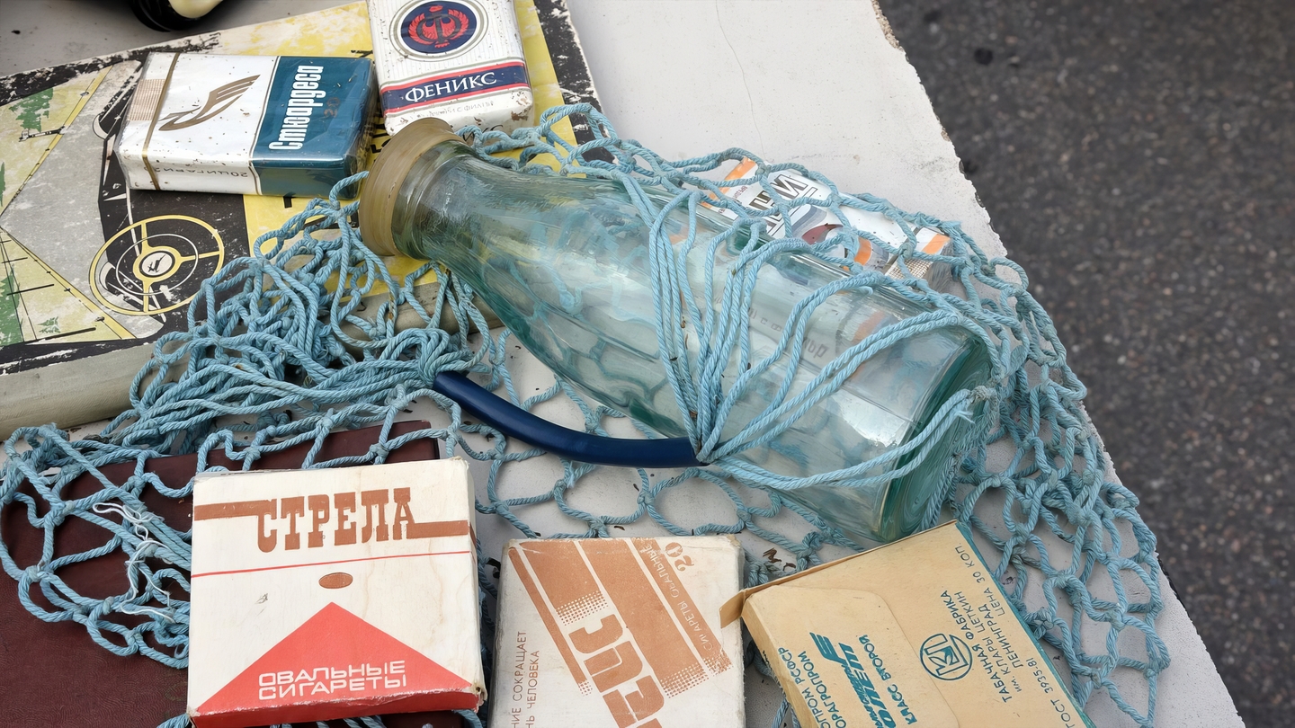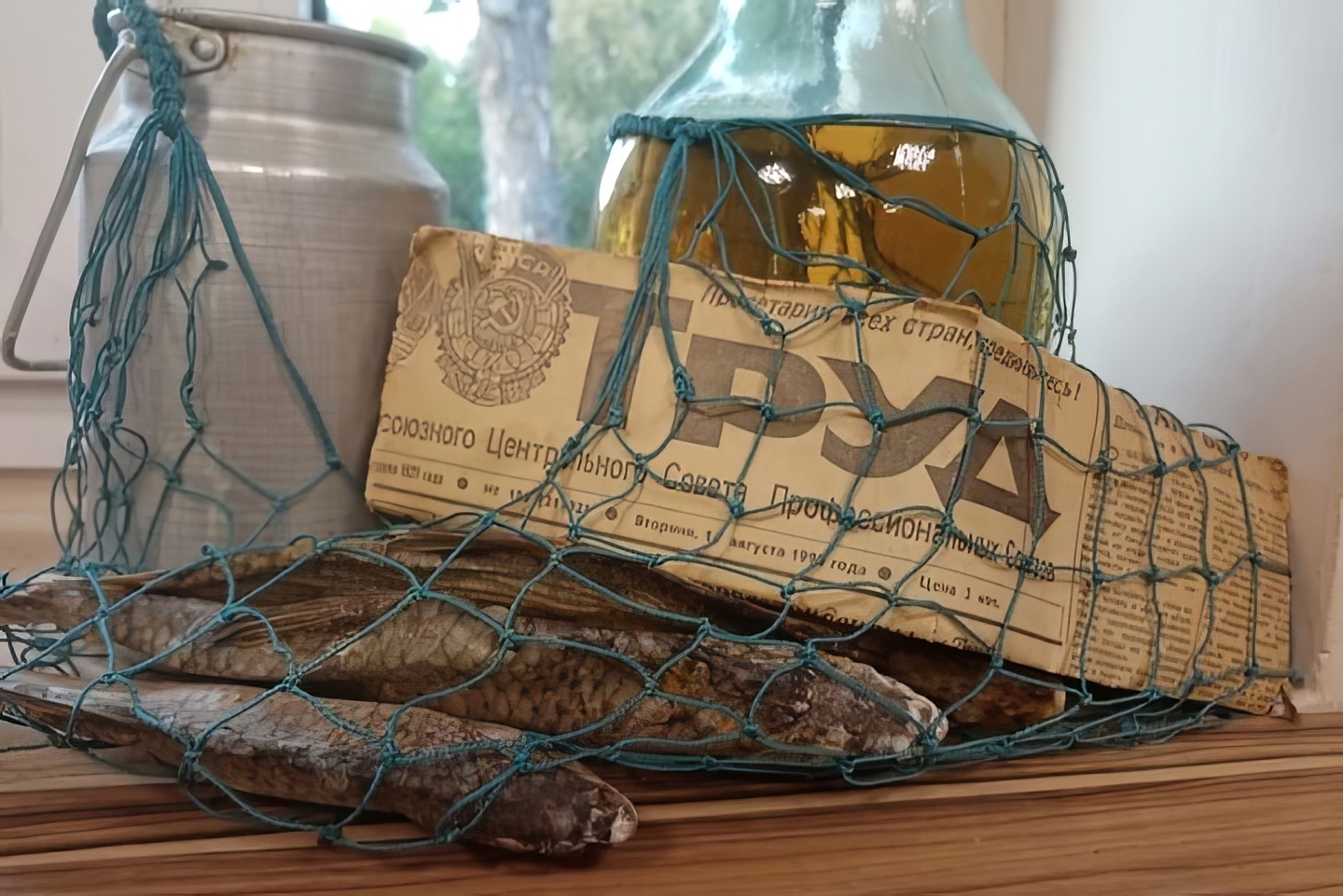 Привычная авоська — бытовая единица выживания, сетка из прошлого, — здесь получает новую функцию: вместилище смыслов, обрывков общественного подсознания, культурных штампов.