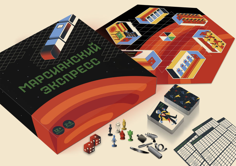 Игральные карты, доска и фишки настольной игры «Марсианский экспресс».