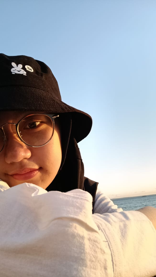 features the ocean and beach framed within the shape of a walrus’s face. Simple lines and a soft color palette create a calm atmosphere, reflecting humanity’s connection to nature and climate change.