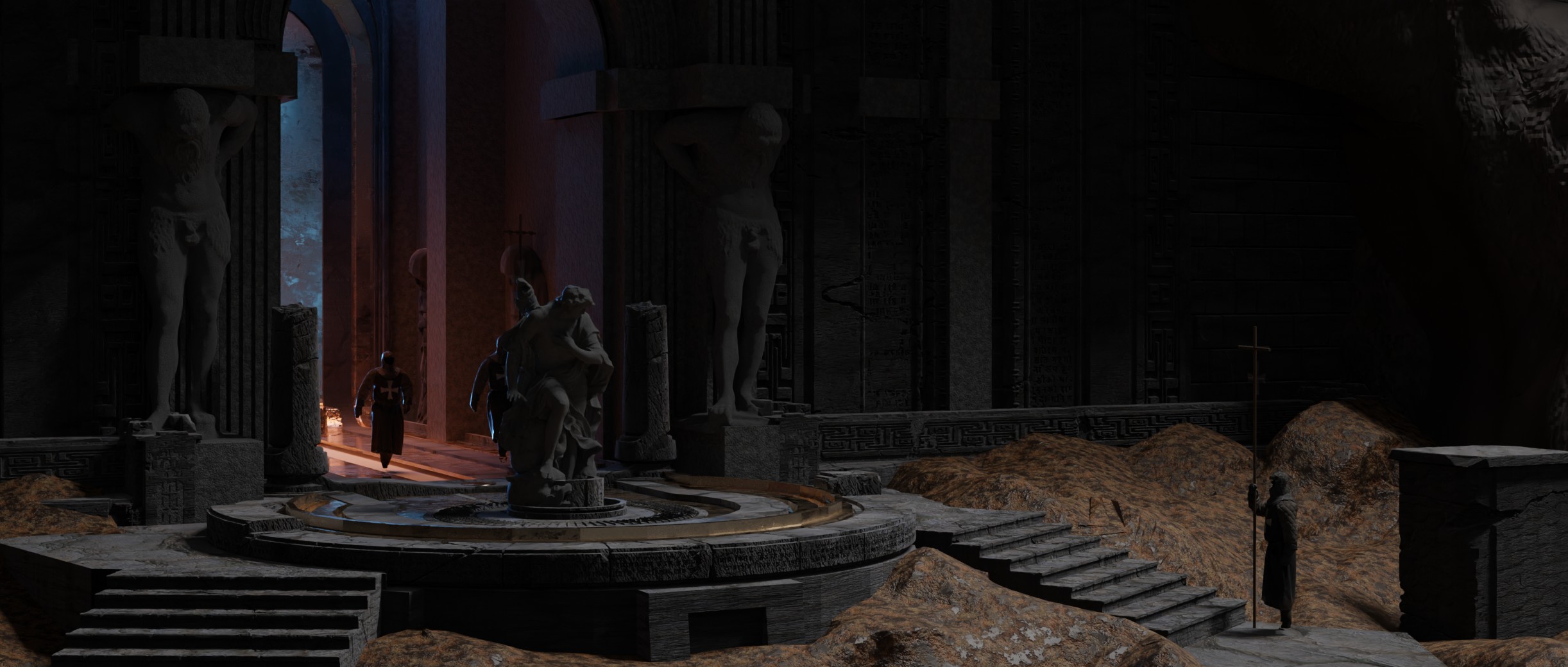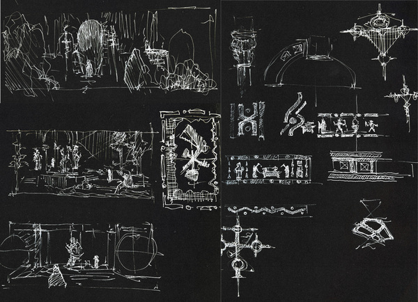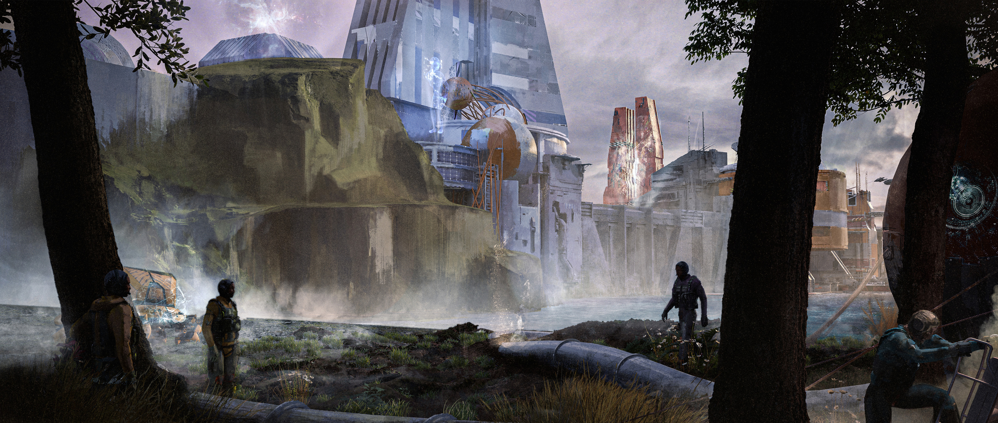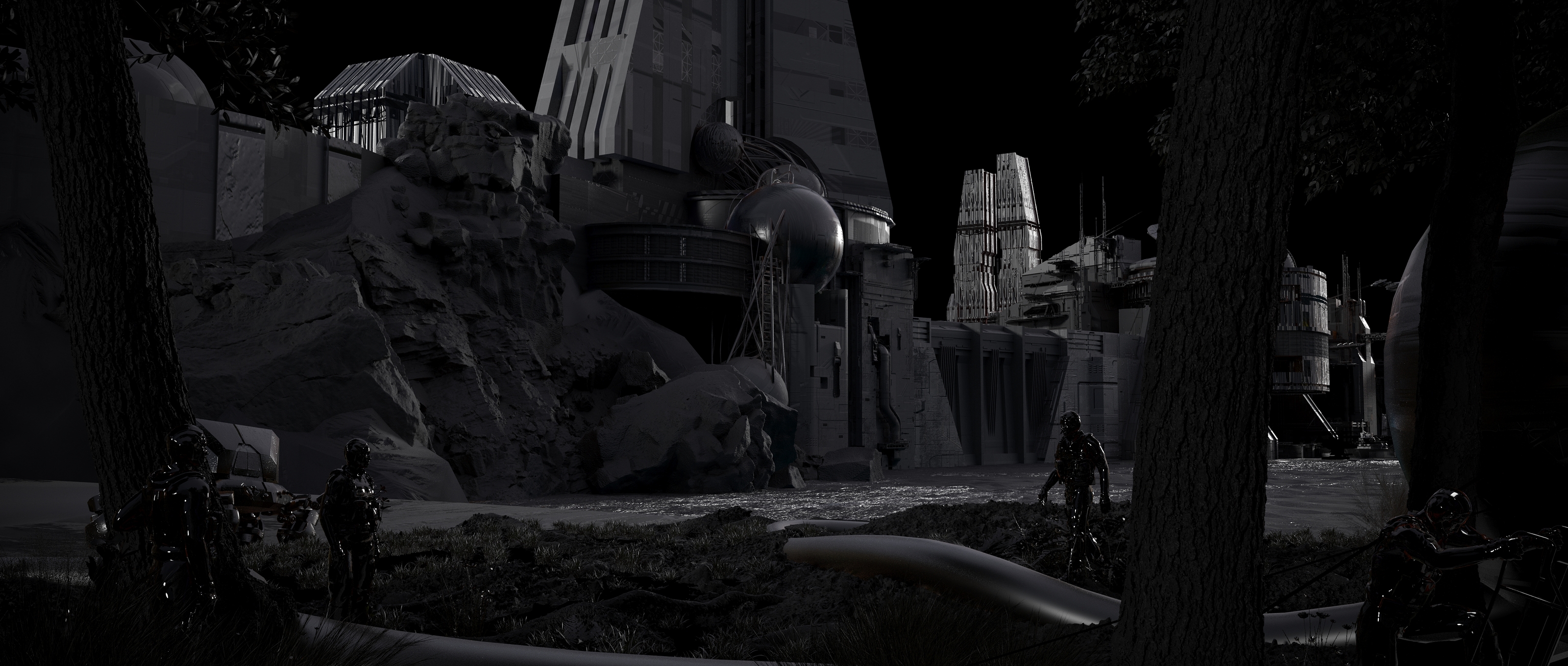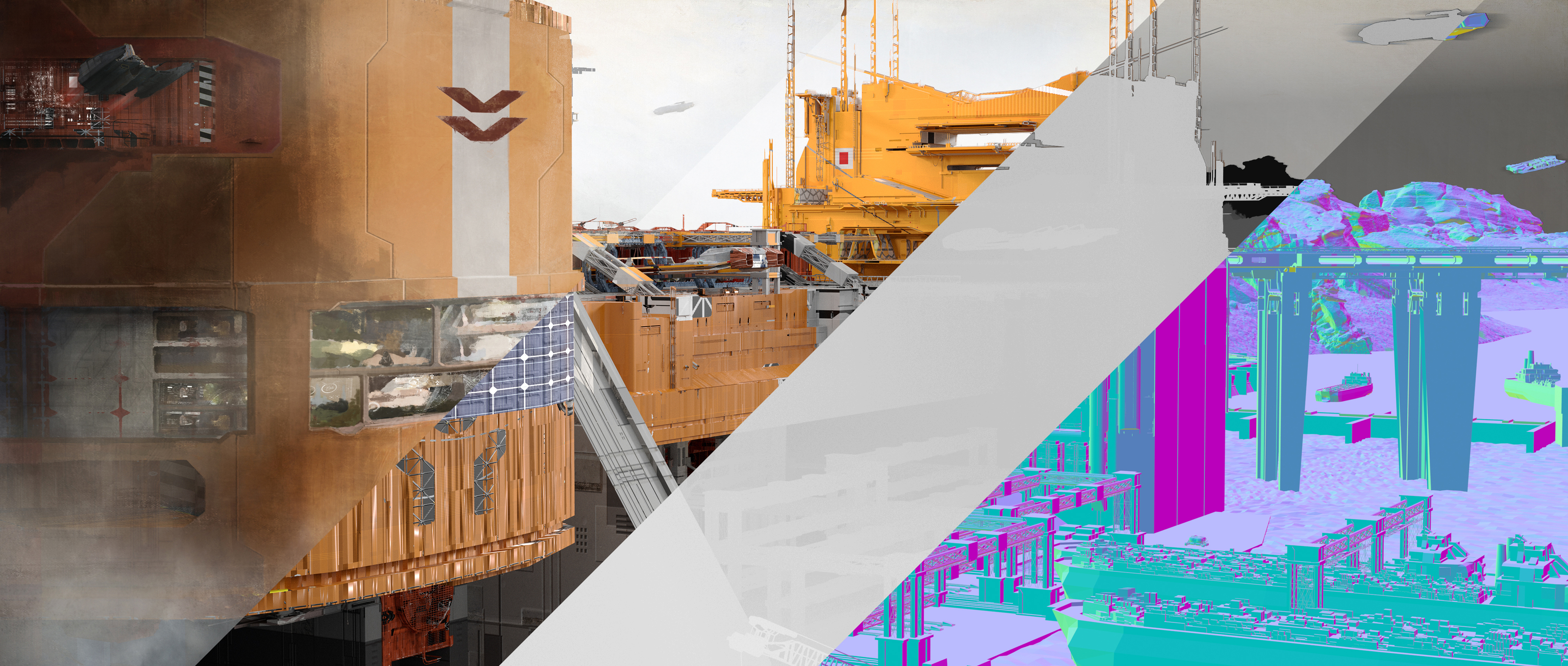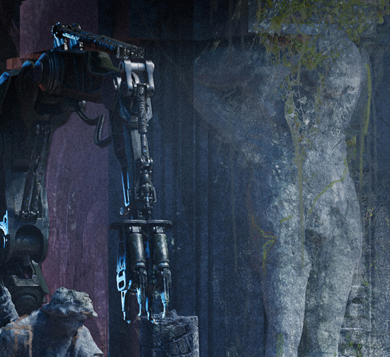 Опубликованные работы демонстрируют несколько локаций: порт; секретную лабораторию; древний храм