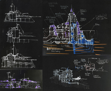 OUTCOME Аналитический материал (ArtBible): схемы, блок-схемы, чертежи, концепции главных объектов. Концепт арт, иллюстрации, план города, 3д блок аут города.