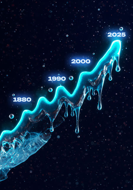 Этот график показывает изменение годовых температурных аномалий с 1880 года по настоящее время. Линия имеет градиентный цвет от светло-голубого (ранние годы) до тёмно-синего (поздние годы), что подчёркивает прогрессию.