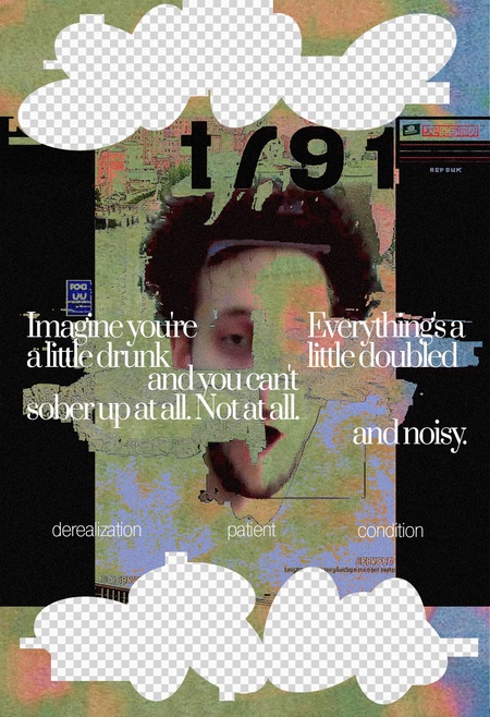 Photos showing the phenomena of the cloak and the sinister valley often cause a state of exclusion and discomfort. The idea behind the poster is to demonstrate derealization as a state. This will be done through the above-mentioned phenomena, which may cause similar feelings of exclusion and discomfort.