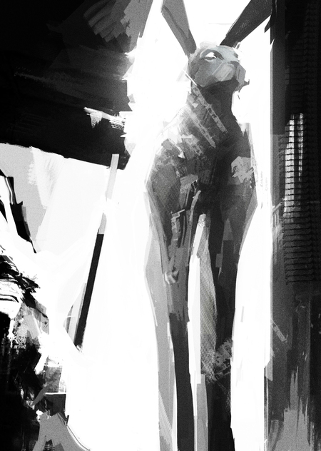 the mechanized hares shake off snow from their fur