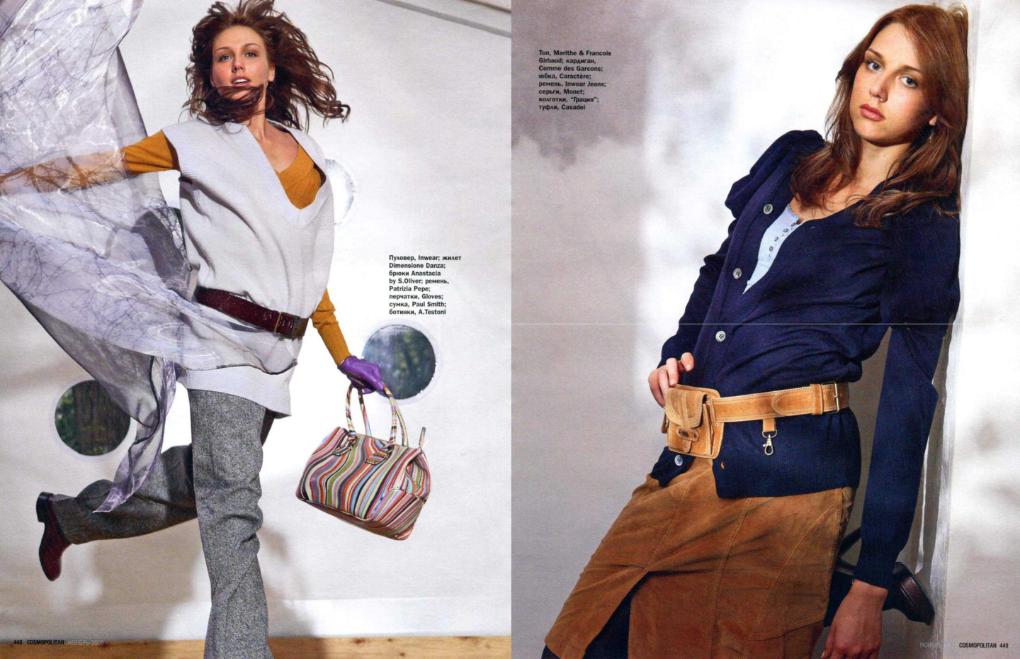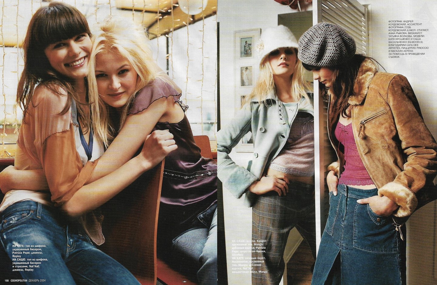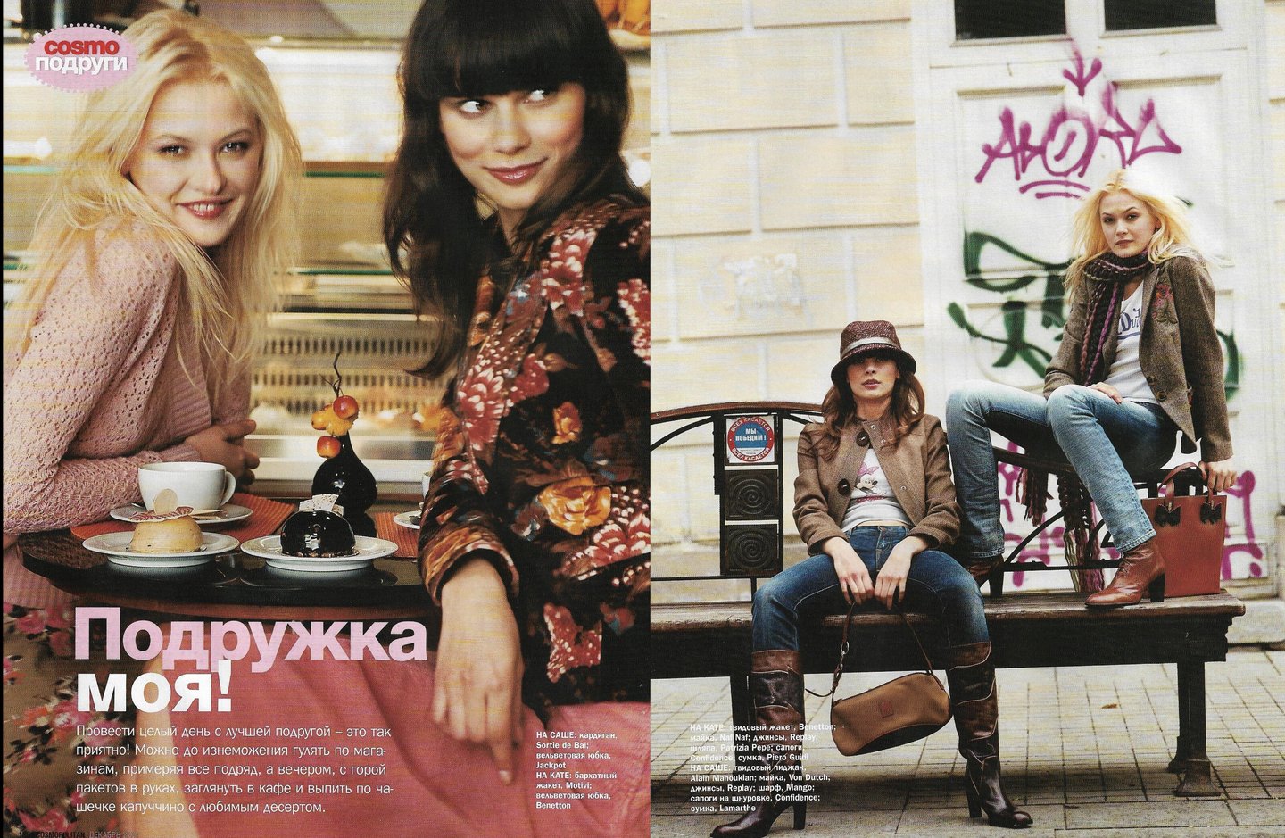 «Подружка моя!» Cosmopolitan Russia, декабрь 2004 фото: Андрей Мордовский стиль: Анна Рыкова модели: Катя Ярошенко и Саша Васильченко (IQ models)