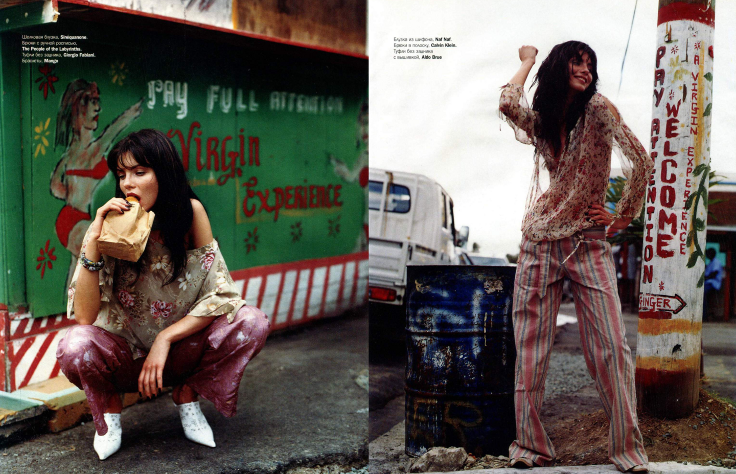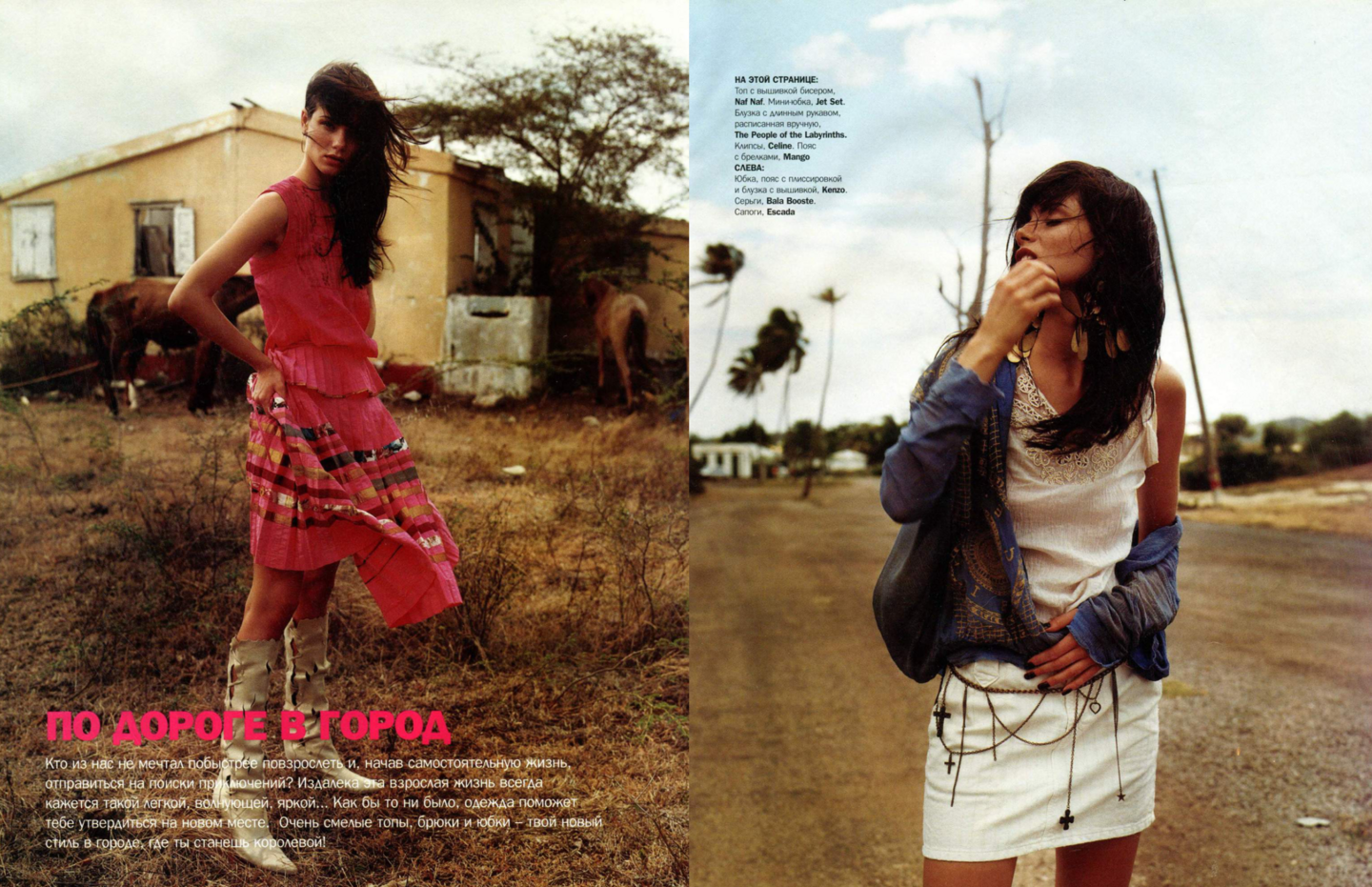 «По дороге в город» Cosmopolitan Russia, июль 2003 фото: Влад Локтев стиль: Ирина Черняк модели: Кристина Руденькая (Fashion), Наталья Семенюк (Point)