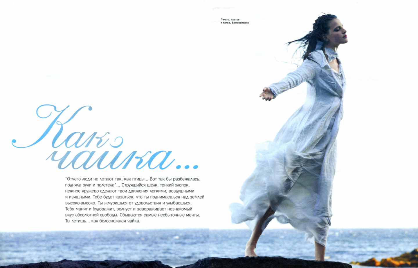 «Как чайка» Cosmopolitan Russia, июль 2005 в съемке использована одежда Nina Donis Фото: Михаил Королев Стиль: Лали Чочия