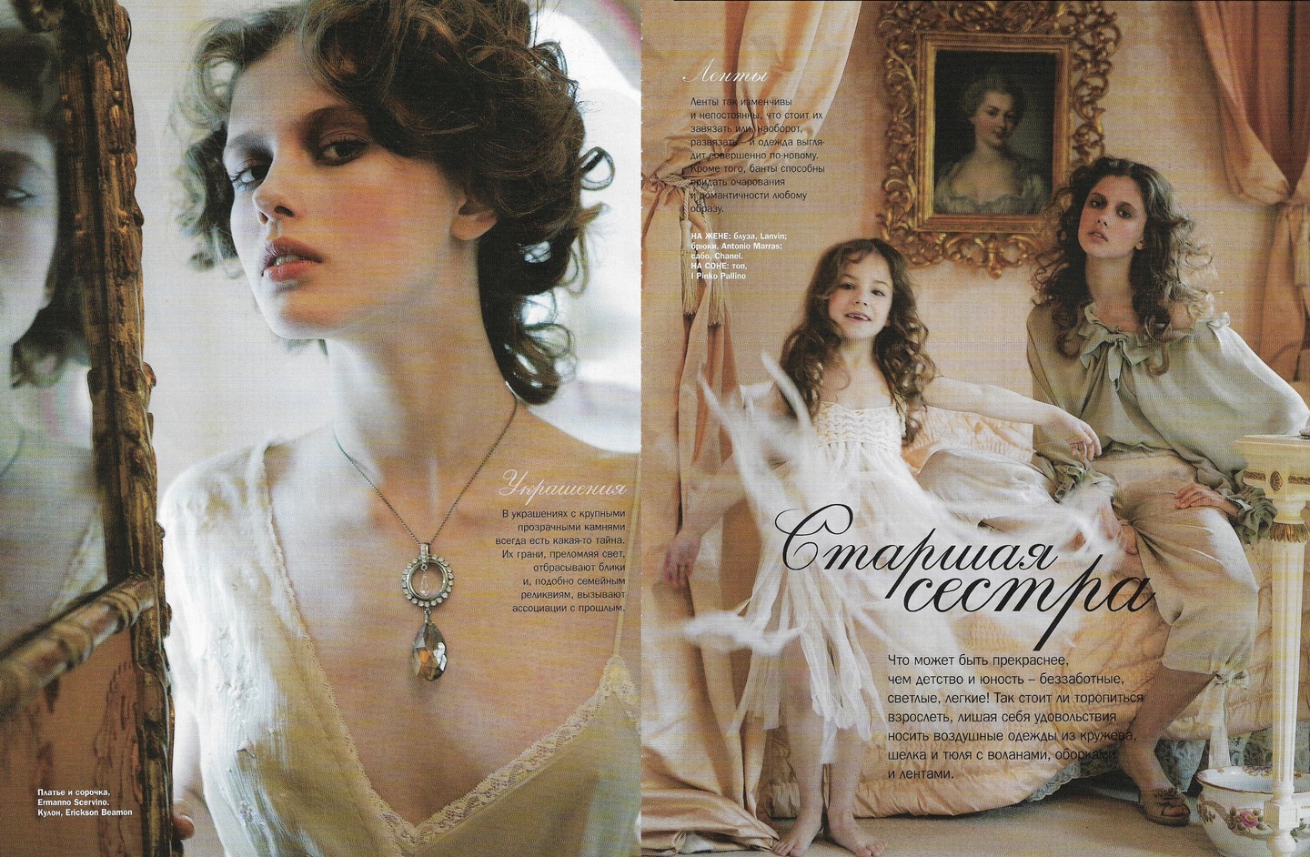 «Старшая сестра» Cosmopolitan Russia, май 2004 фото: Влад Локтев стиль: Ирина Черняк модель: Евгения Запорожец, девочка: Соня Шестова