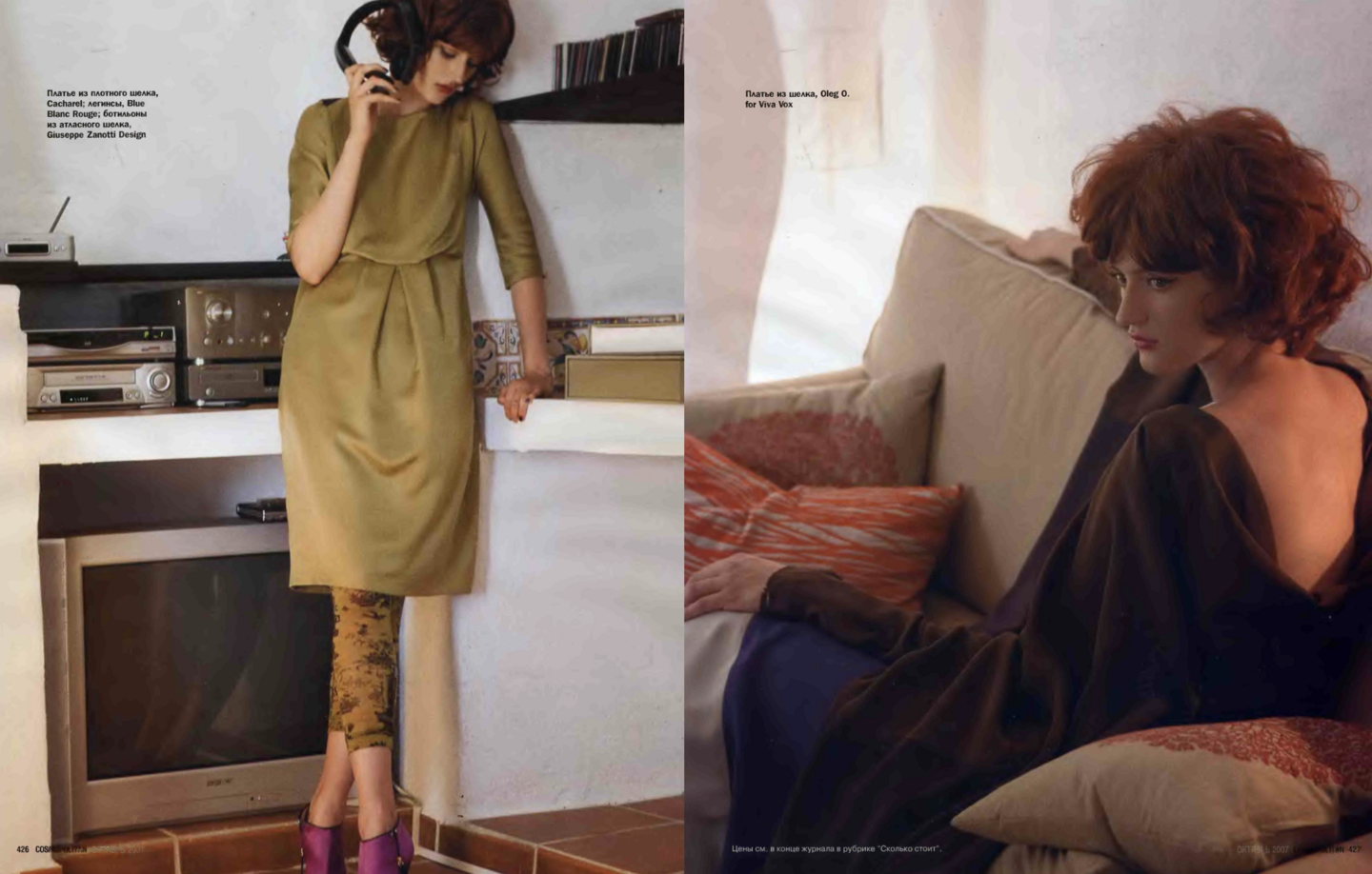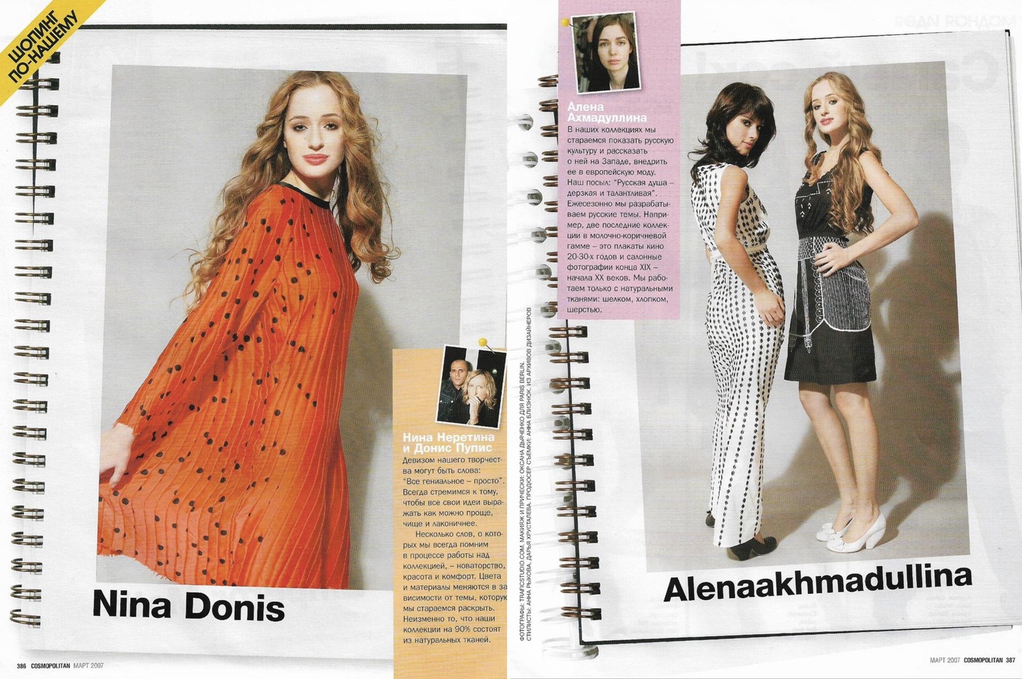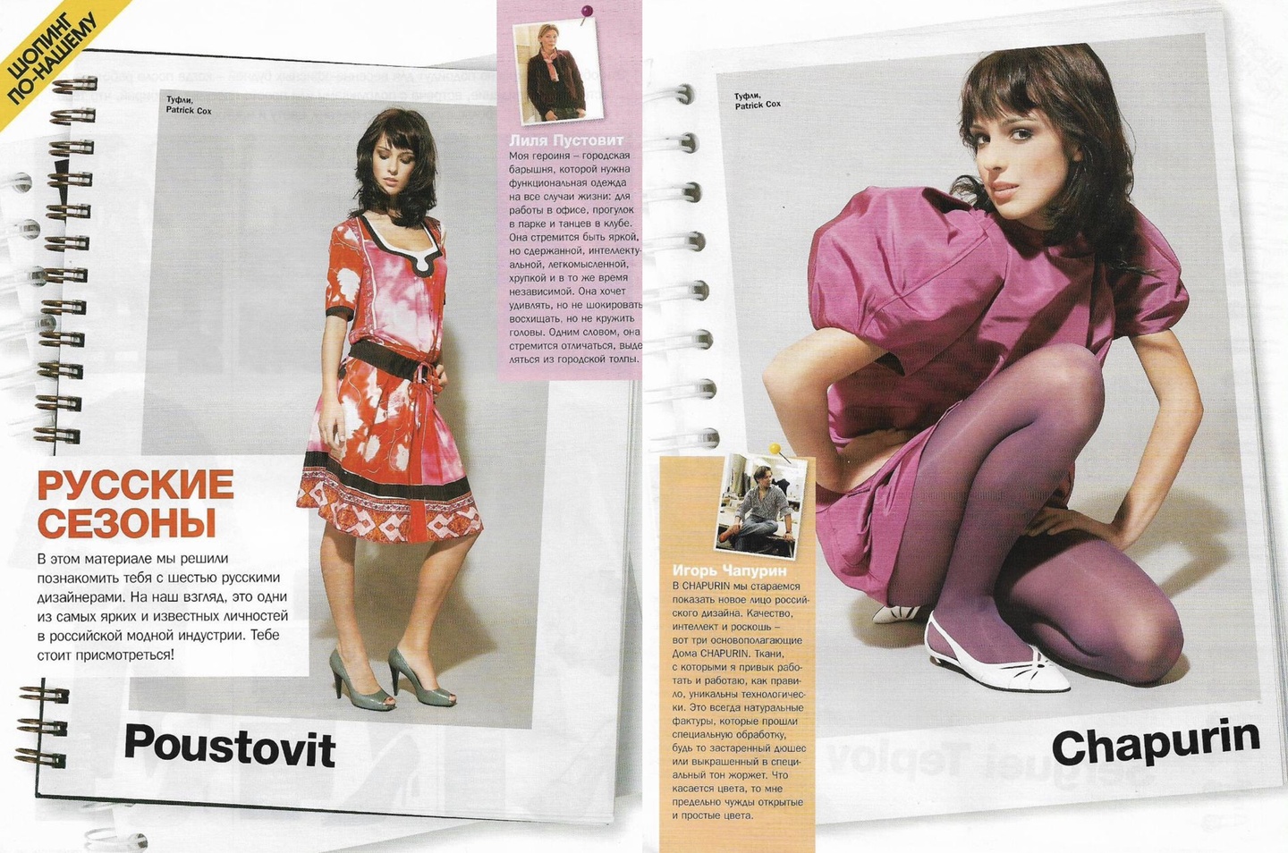 «Русские сезоны» Cosmopolitan Russia, март 2007 в съемке использована одежда Лили Пустовит, Игоря Чапурина, Сергея Теплова, Кати Гомиашвили, Nina Donis и Алены Ахмадуллиной