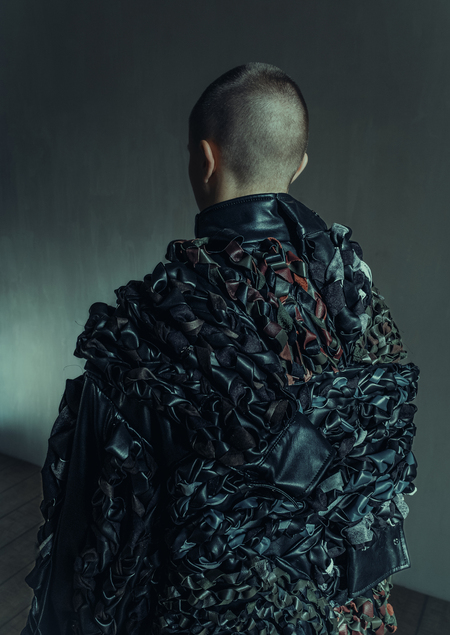 Первый образ в коллекции обращается к феномену домашних плетёных ковриков ставших символом уюта — предметов, рождающихся из переработки старых вещей и текстильных остатков. Они соединяют в себе память о прошлом использовании ткани, следы времени и физический труд.