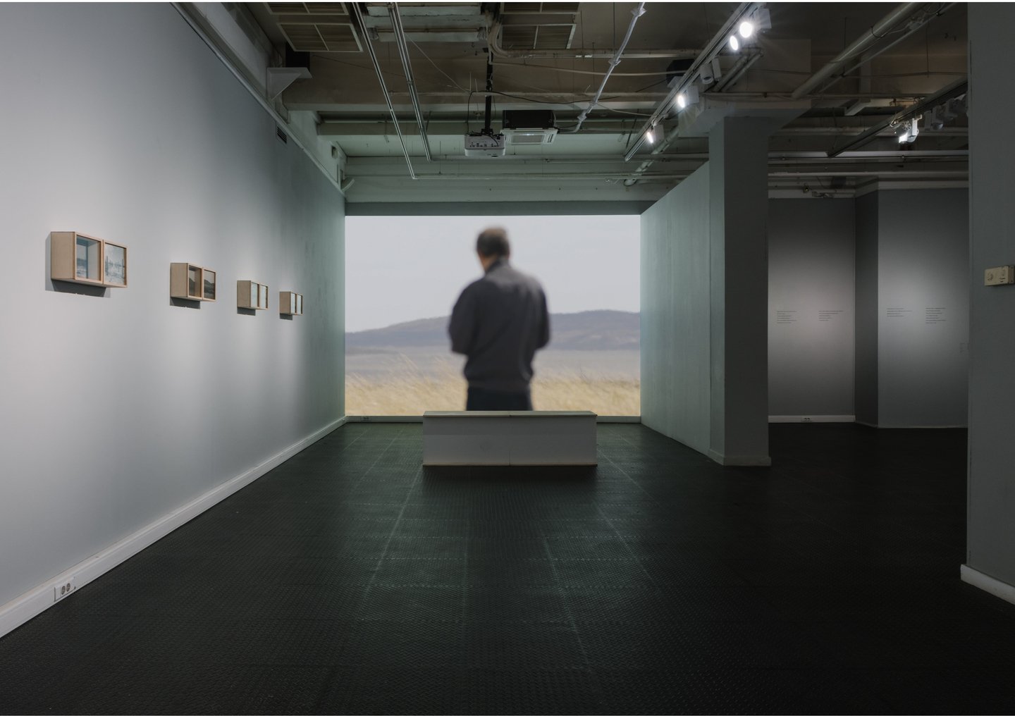 В потемках зала галереи расположились экспонаты — результаты полевых штудий. Человеческих голосов почти не слышно. Зритель становится молчаливым спутником художника, который путешествует, внимательно ищет, медитирует и фиксирует среды, куда он включается.