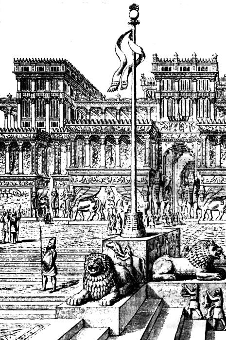 Дворец Саргона II в Дур-Шаррукине (Хорсабад) — одно из самых впечатляющих архитектурных достижений Ассирии. Комплекс был возведён на огромной искусственной платформе, выровненной и укреплённой специально для того, чтобы постройка доминировала над всем городом. Композиция комплекса основана на прямых осях и правильных прямоугольных формах, а несущие стены достигали значительной толщины и опирались на мощный каменный цоколь, обеспечивавший устойчивость массивного фасада.