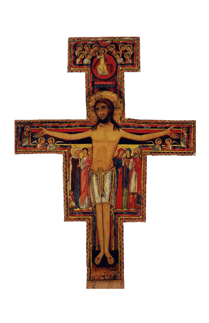 Сцены из жизни святого Франциска: 04 Распятие из Сан Дамиано. Около 1297 год. Ассизи, церковь Сан Франческо, верхняя церковь и Крест Сан — Дамиано. Ассизи, базилика Санта-Кьяра