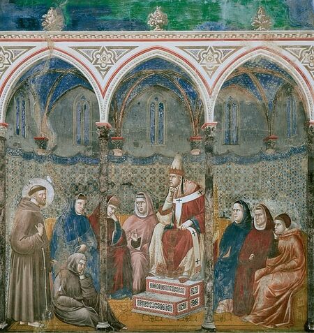 Сцены из жизни святого Франциска: 07 Утверждение устава францисканского ордена. Около 1300 год. Ассизи, церковь Сан Франческо, верхняя церковь