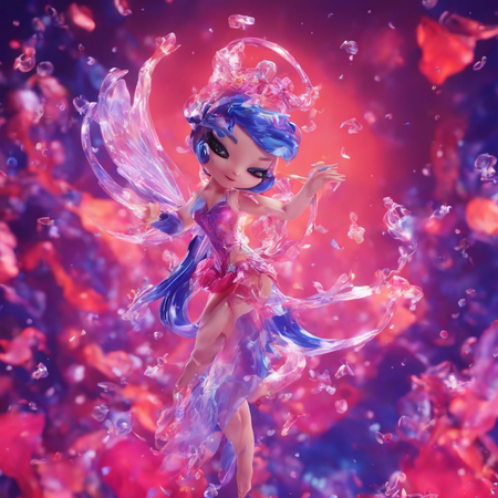 Винкс стали культовым явлением, и 20-летие — это отличная возможность вернуть старых поклонников и привлечь новое поколение. Ребут позволит обновить знакомые истории и персонажей, сохранив при этом дух оригинала — где у каждой из фей есть уникальная стихия, которая в синтезе олицетворяет каждую из волшебниц. В 2025 году был выпущен сериал с новой графикой, которая была адаптирована на выпуск большого тиража серий. Из-за этого многие фанаты остались недовольными отсутствием прежнего стиля и «хрустальности» фей. С помощью технологии Stable Diffusion XL в сочетании с DreamBooth и LoRA я обучила нейросети на этом дата-сете. Это позволило мне создать изображения, которые не только соответствуют моему видению, но и сохраняют узнаваемые черты оригинальных персонажей и их магического мира. При выборе изображений для датасета, я искала работы 3d художников в таком стиле, где одновременно преобладают яркие, выраженные и хрупкие формы и черты лица, а также видимо представлен концепт волшебства. Датасет состоит из 100 изображений 512×512 пикселей.