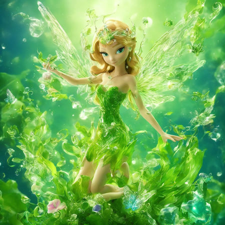 В процессе генерации изображений было важно прописывать не только токен для присваивания изображению стиля обучения. В промпте также были указаны особенности феи, такие как цвет волос, стихия, волшебство и тд.