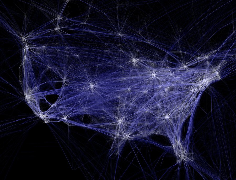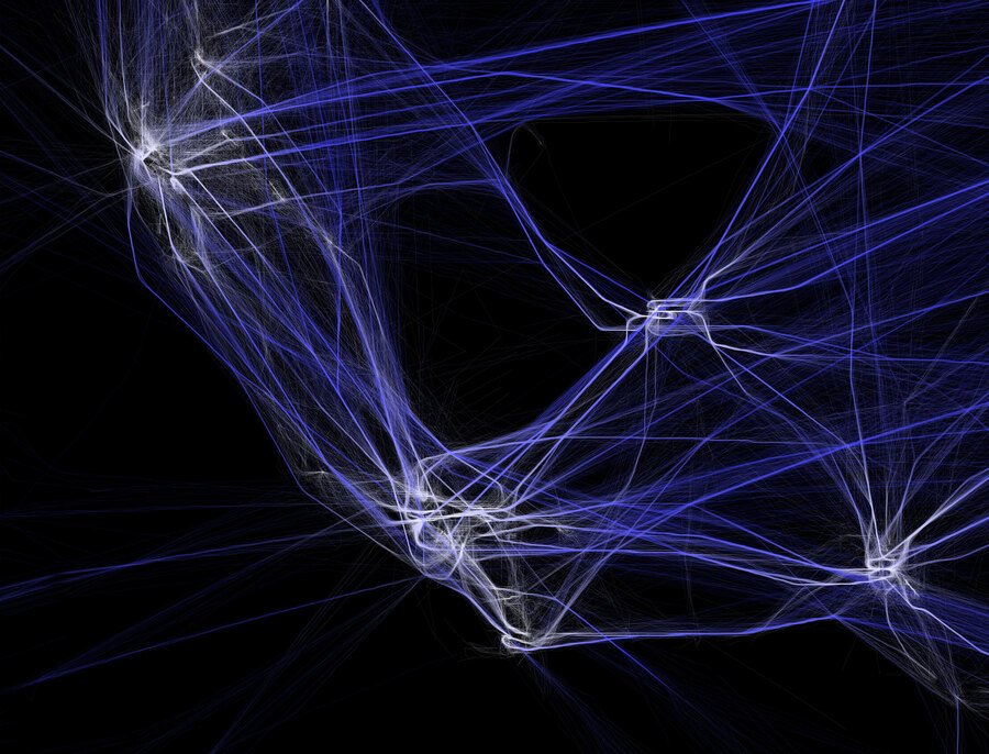 Проект Аарона Коблина визуализирует коллективное действие тысяч людей (пилотов, пассажиров, диспетчеров), чьи индивидуальные решения формируют глобальную сеть перемещений. Каждая линия — это след не отдельного человека, а массового ритуала современности: ежедневных миграций между городами, странами, континентами. Индивидуальные цели (улететь на встречу, вернуться домой) сливаются в единый поток перемещения.