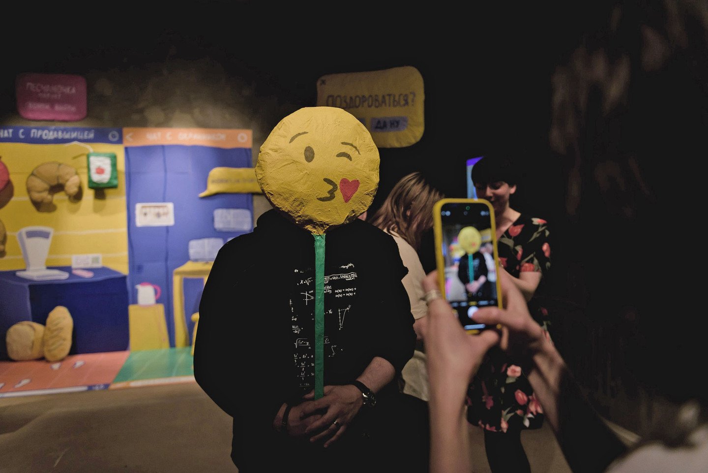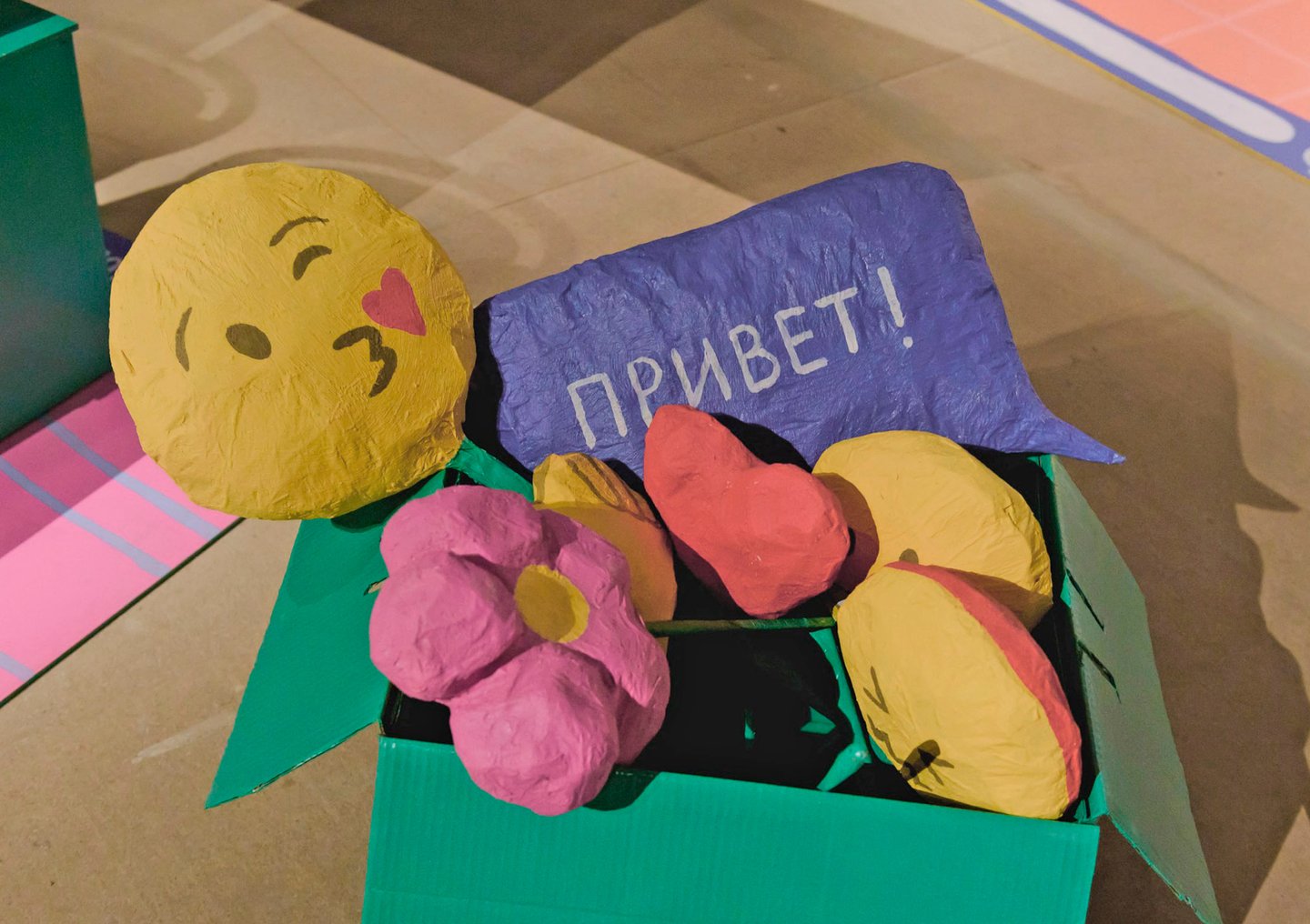 Часть инсталляции — коробка с эмодзи, которая была задействована в перформансе