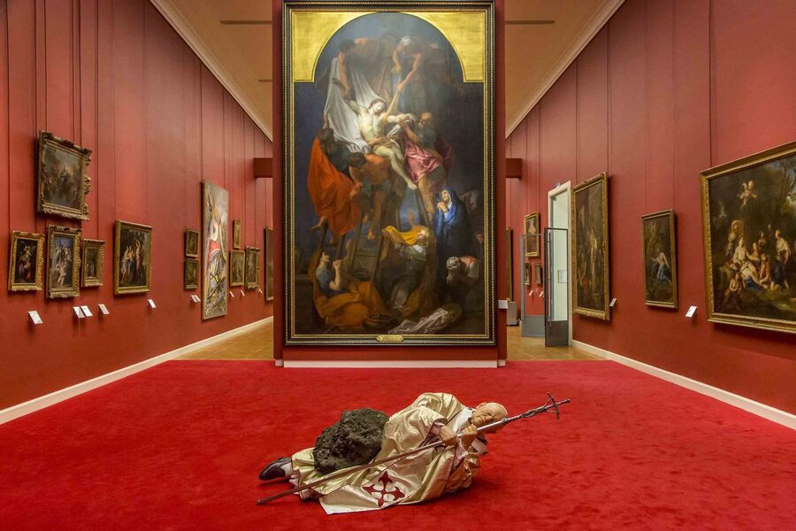 Maurizio Cattelan, La Nona Ora, 1999 Installation view, «Not Afraid of Love», Monnaie de Paris, 2016 Photo: Zeno Zotti. Courtesy, Maurizio Cattelan’s Archive. © Maurizio Cattelan 2024