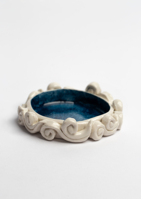 В рамках вариатива «Мастерская фарфора» я создала курильницу для жжения буддийских благовоний. Данное изделие выполнено как современное переосмысление традиционного ритуального атрибута и несет в себе ностальгию по малой родине. «Сэбэрлэлгэ» переводится с бурятского как «очищение», что относит к ритуалу окуривания пространства с помощью рассыпчатых благовоний.