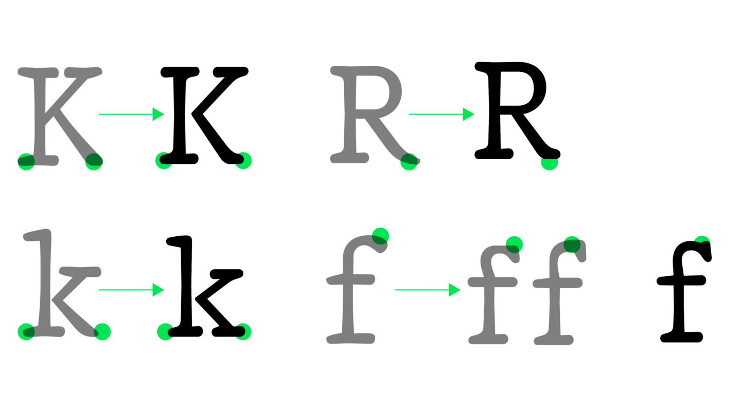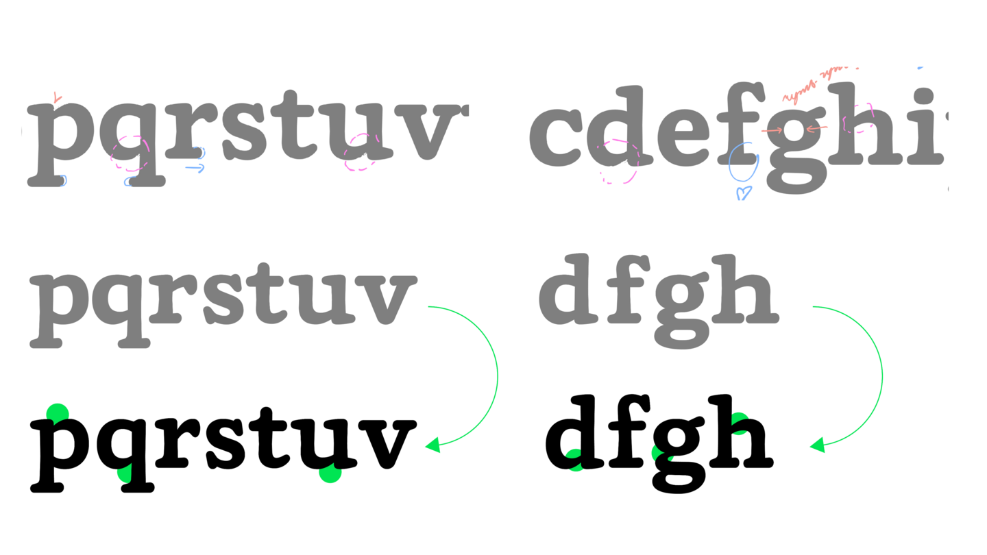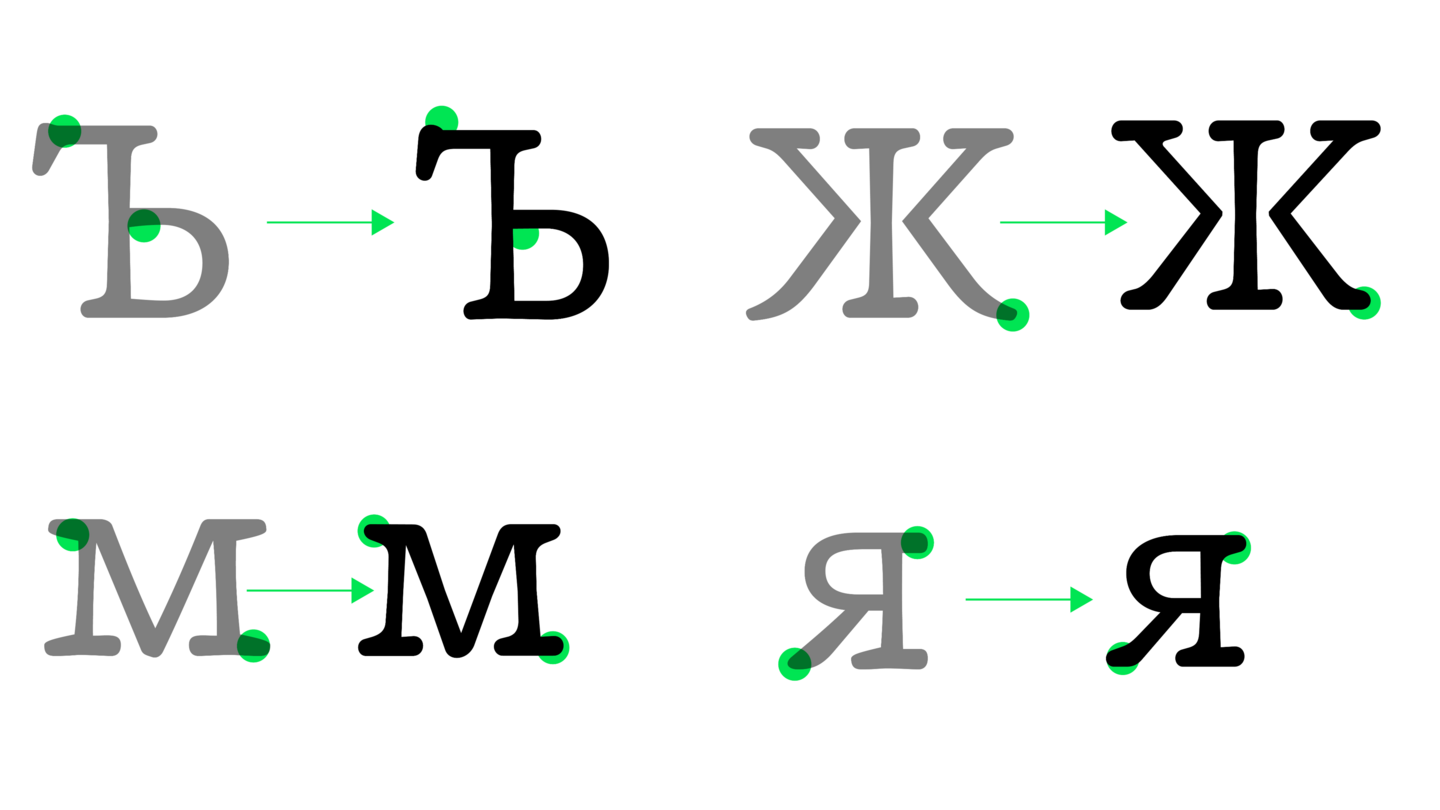 Также было проведено много итераций при поиске подходящих форм и деталей, которые бы лучше встраивались в общий ритм шрифта.