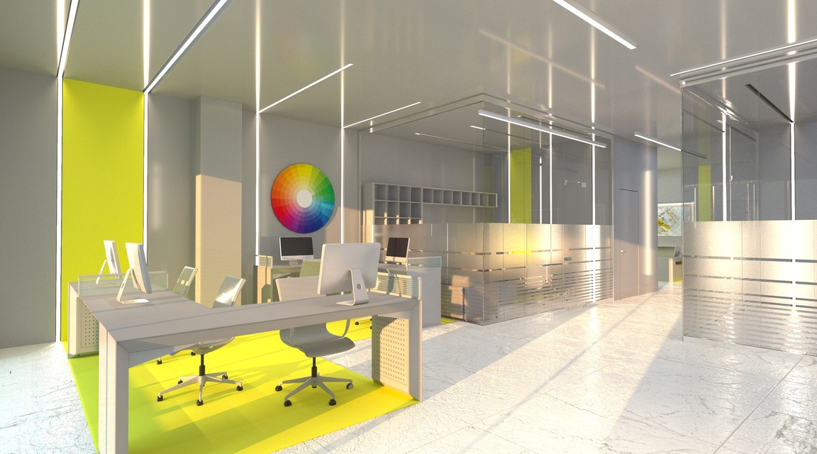 Архитектурная основа офиса представляет объем общей площадью 150 М2. Высота потолков 4000 мм. Офис разделен на 7 зон (входная группа, санузел, кабинет, кухня, кабинет начальника, зона отдыха, рабочая зона, гардеробная) и один длинный коридор. Всего в офисе 1 панорамное окно. В помещении присутствуют несущие стены и перегородки. Потенциально площадь мокрых зон возможно расширить за счет площади коридора.