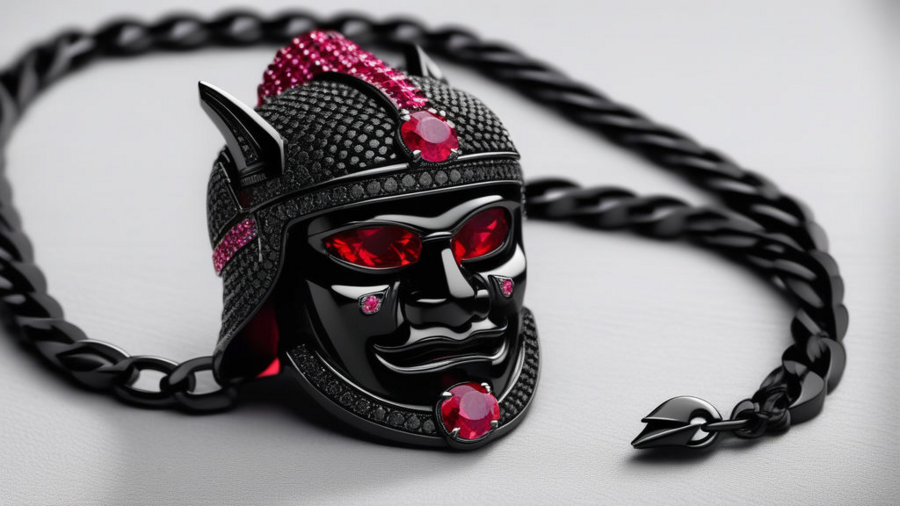 Ювелирные изделия пропитаны самурайским духом. Рубин выбран как идеально сочетаемый с перечисленными металлами камень.
