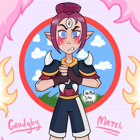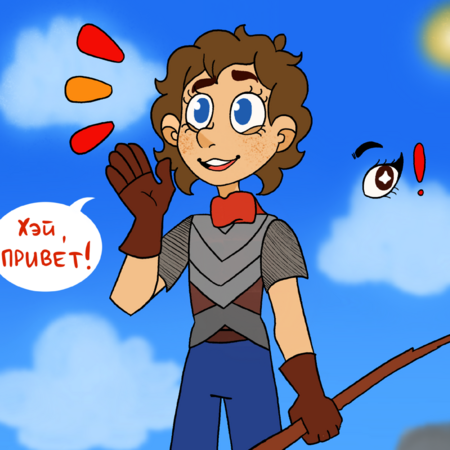 Второй вариант более простой стилистики. Персонаж очень похож на заданного по заданию, разве что за исключением цвета стрелки, стиль передан просто, но эффективно.