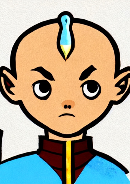 Следуя этому плану, я выполнила задание и смогла создать несколько генераций узнаваемого персонажа (Аватар Аанг) в своем старом стиле.